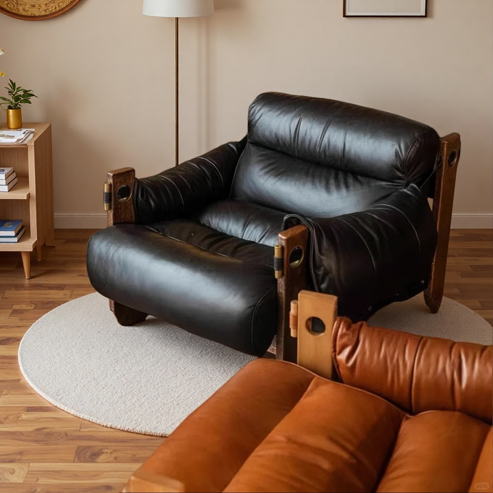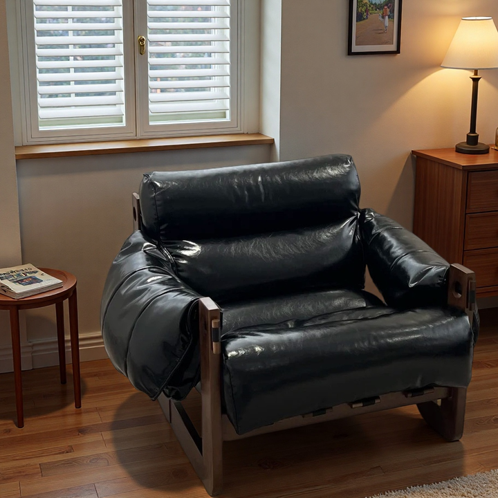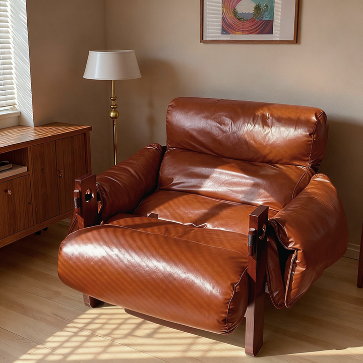 Luxurious Reclining Lounge Chair – Premium Soft-Touch Leather with Oak Frame