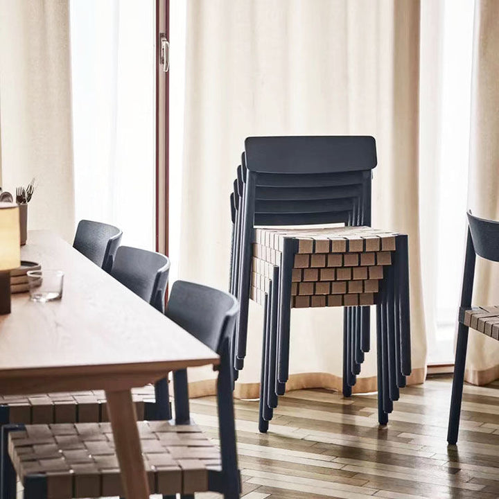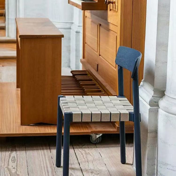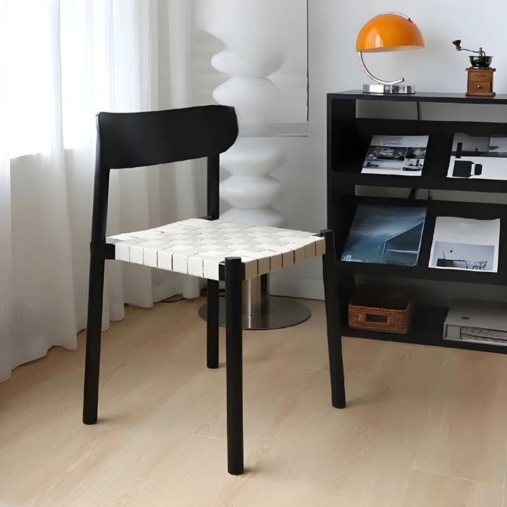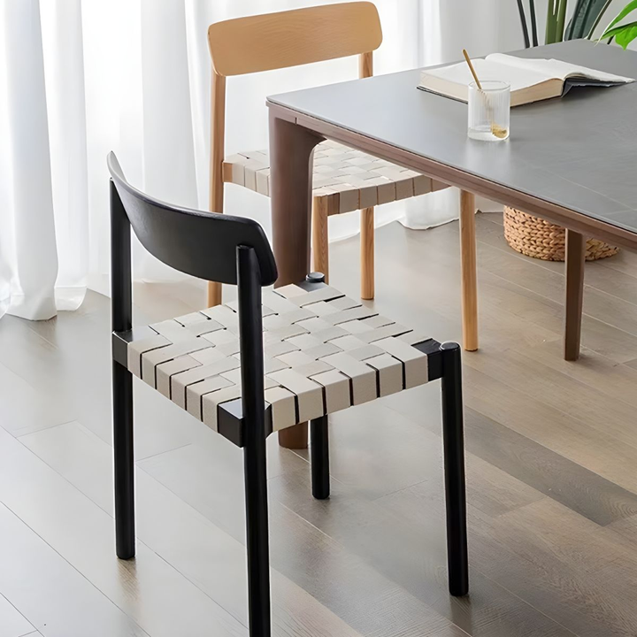 Handcrafted dining chairs with a sleek solid wood frame and woven seat. Arrives fully assembled in a convenient 2-pack — just unbox and enjoy. Perfect for dining rooms, kitchens, or workspaces.