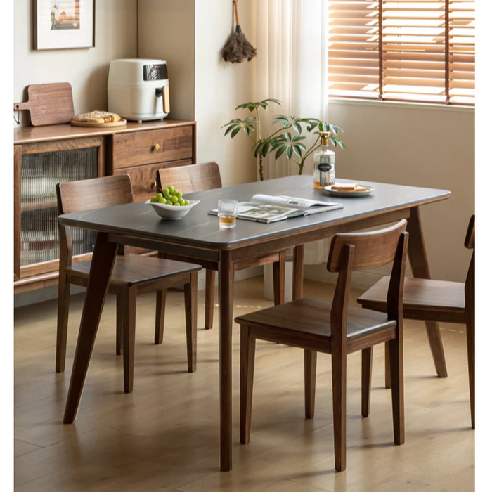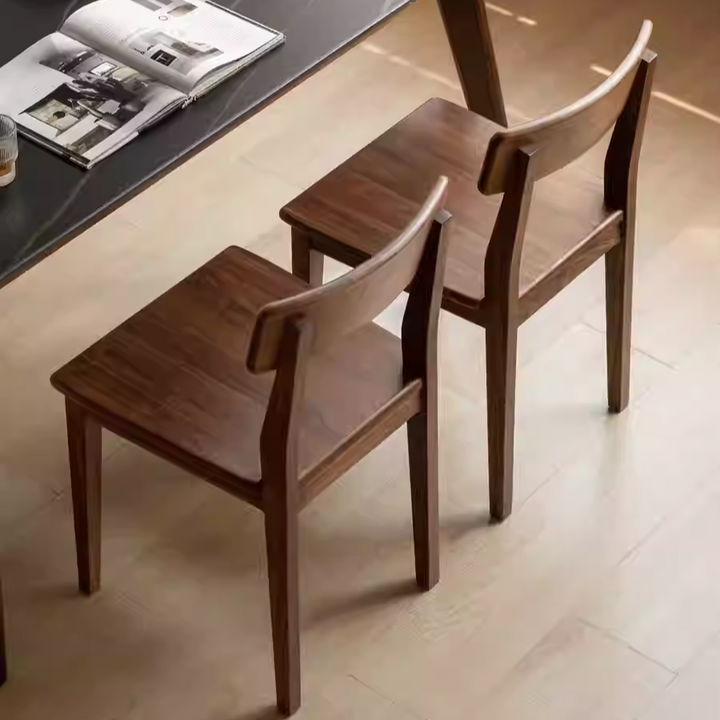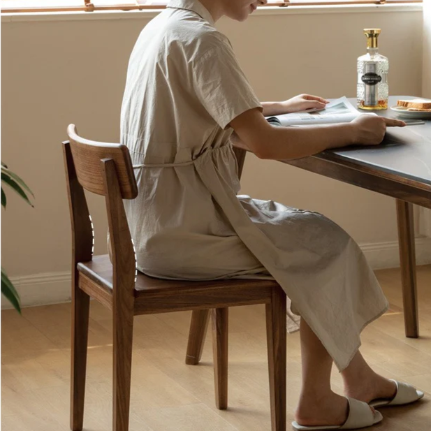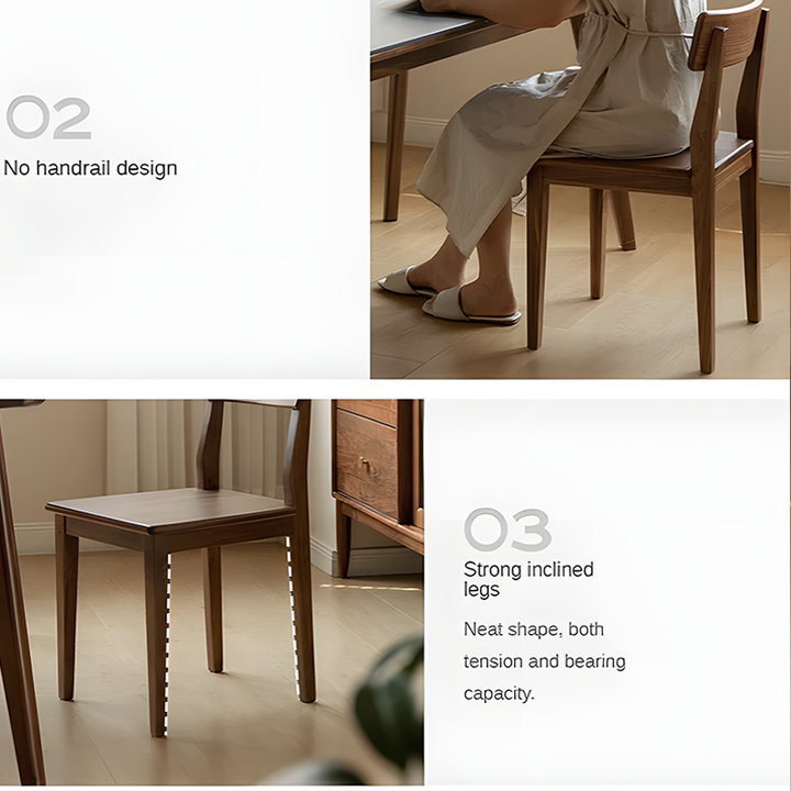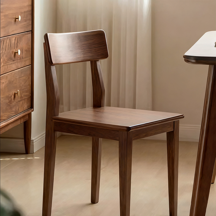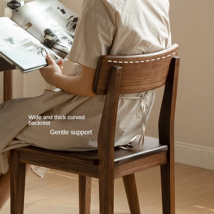 This solid wood dining chair features natural, unique grain patterns and is built to last. Its minimalist modern style boasts clean, elegant lines paired with an ergonomic curved backrest for comfortable support. Whether placed in your dining room, study, or coffee corner, it adds a warm, refined ambiance.