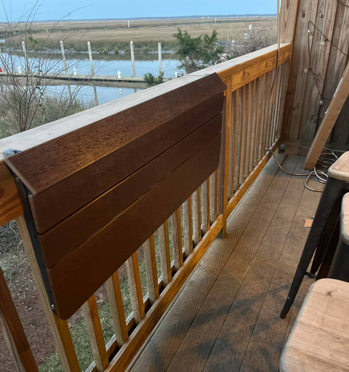 Dark Walnut Wood Outdoor Balcony Railing Table, Hanging Small Bar Lifting Folding Desk, Wall-Mounted Patio Side Table, Portable Floating Shelf