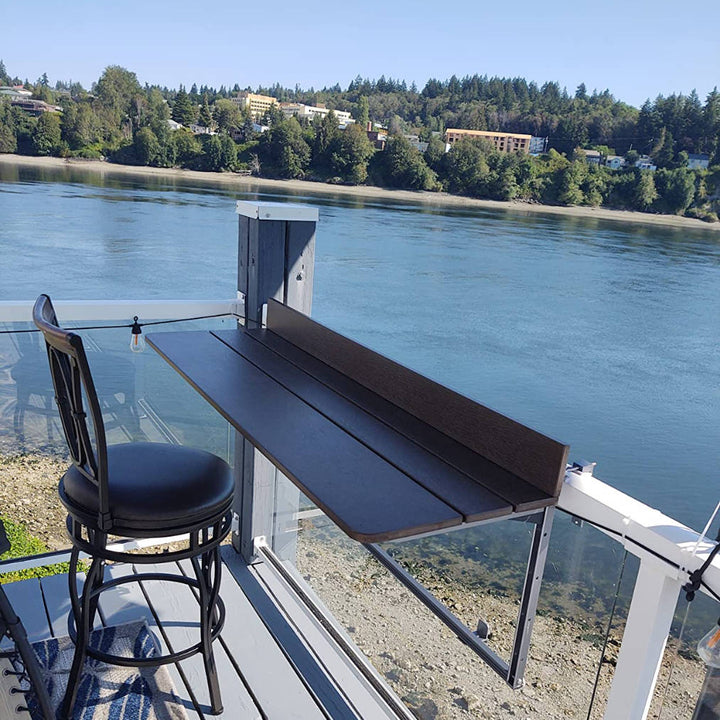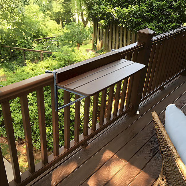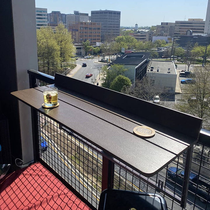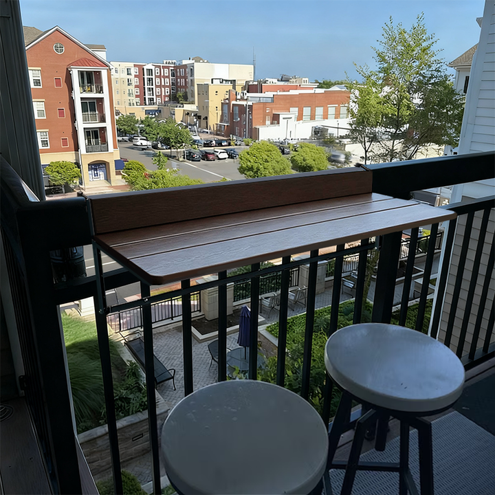 Stable Structure: The folding hanging table design, combined with the railing metal bracket and solid wood table, ensures a sturdy space when easily fixed to the balcony railing.