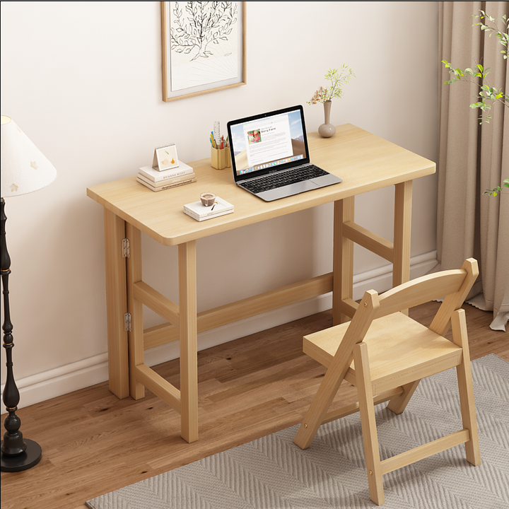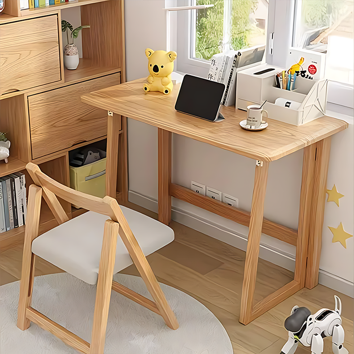 Folding Solid Wood Desk – Space-Saving Convertible Table for Home Office, Dining, and Small Apartments