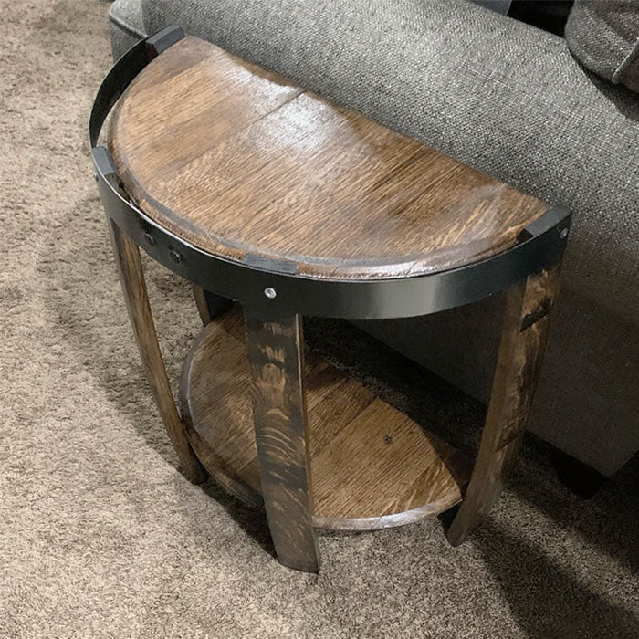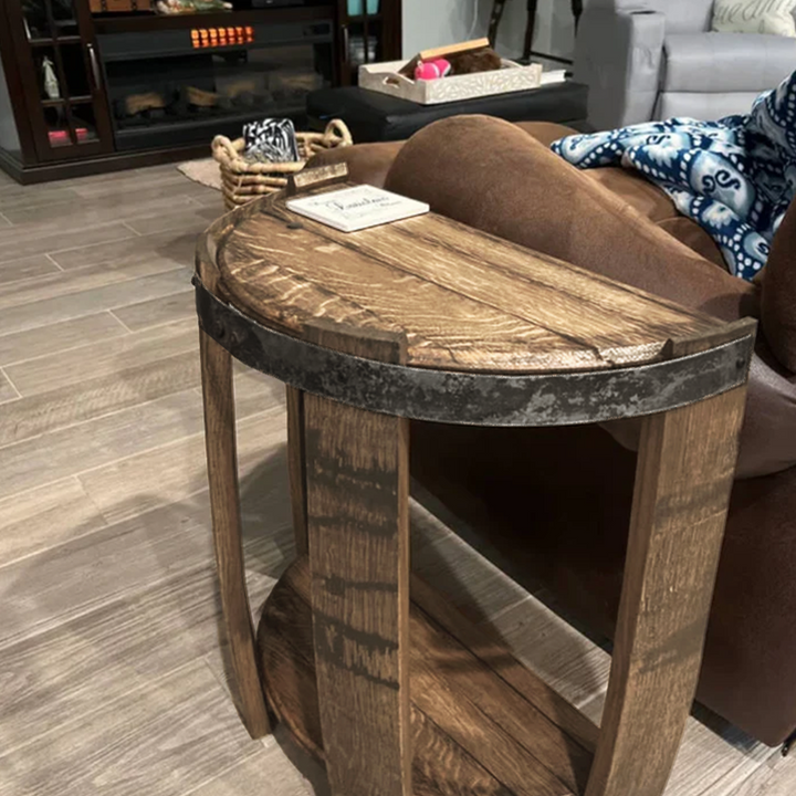 Rustic Charm — Handmade Half Whiskey Barrel Couch End Table, Nightstands