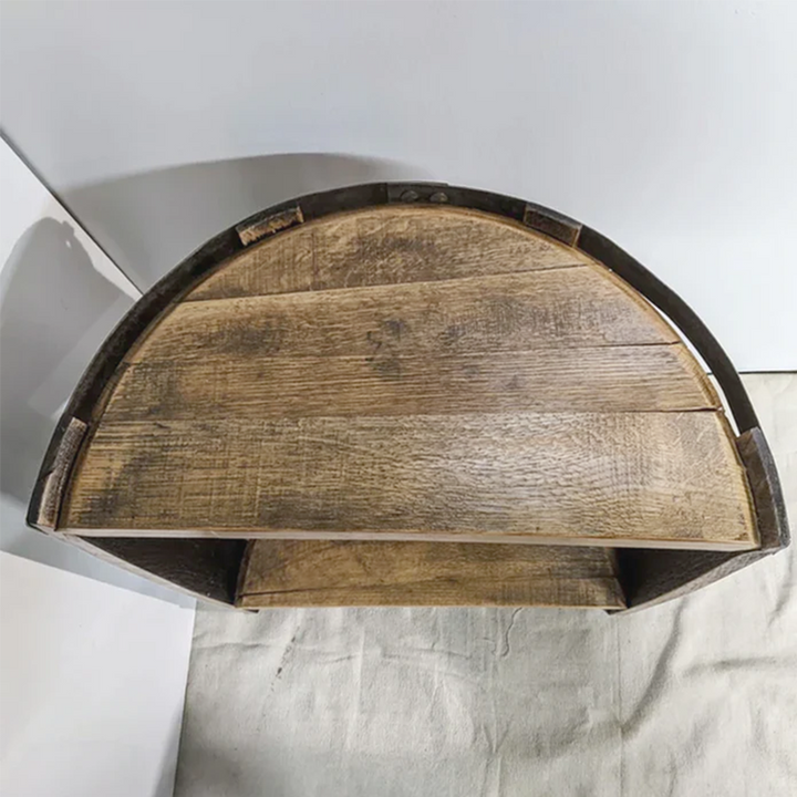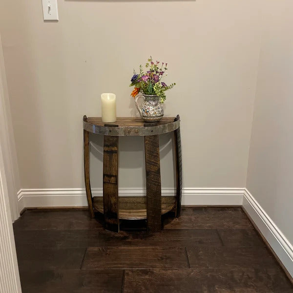 Each order includes 1 table. Each of these wooden half-barrel tables is handcrafted by skilled artisans. The half-barrel shape gives each table a unique story and a rich barrel-inspired feel. The reclaimed wood gets a second life, transforming into a beautiful and meaningful home decor piece.