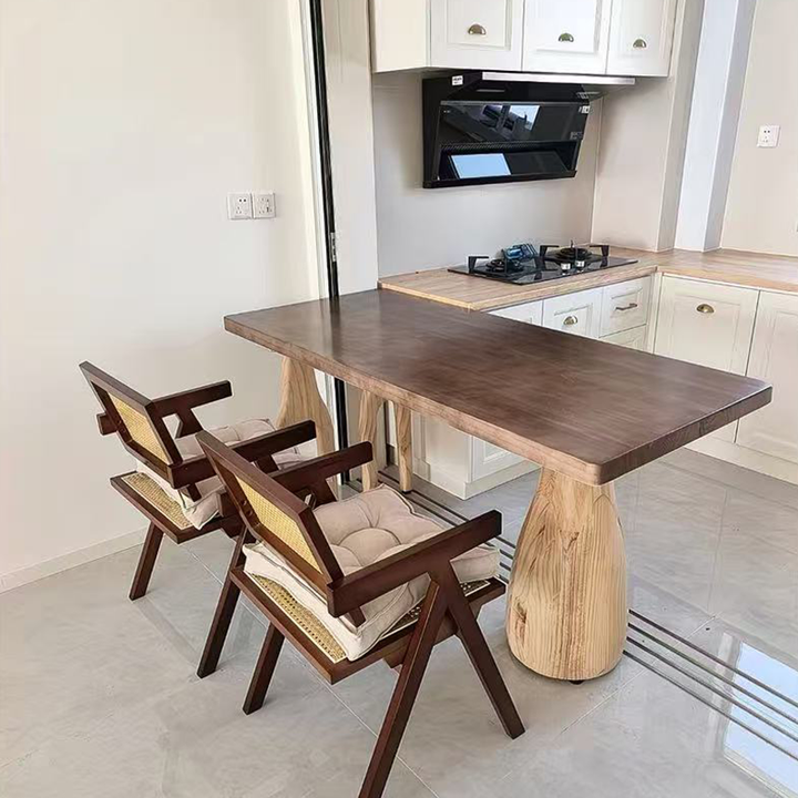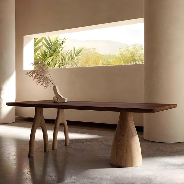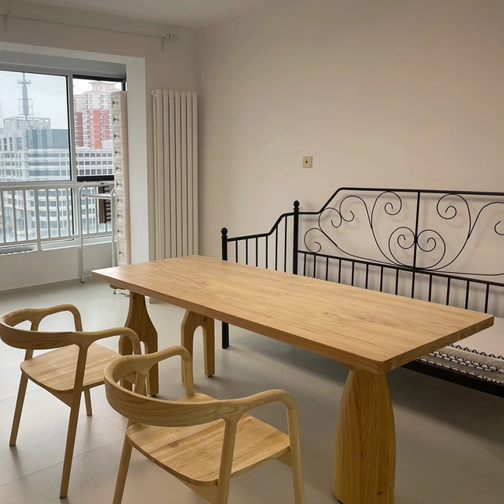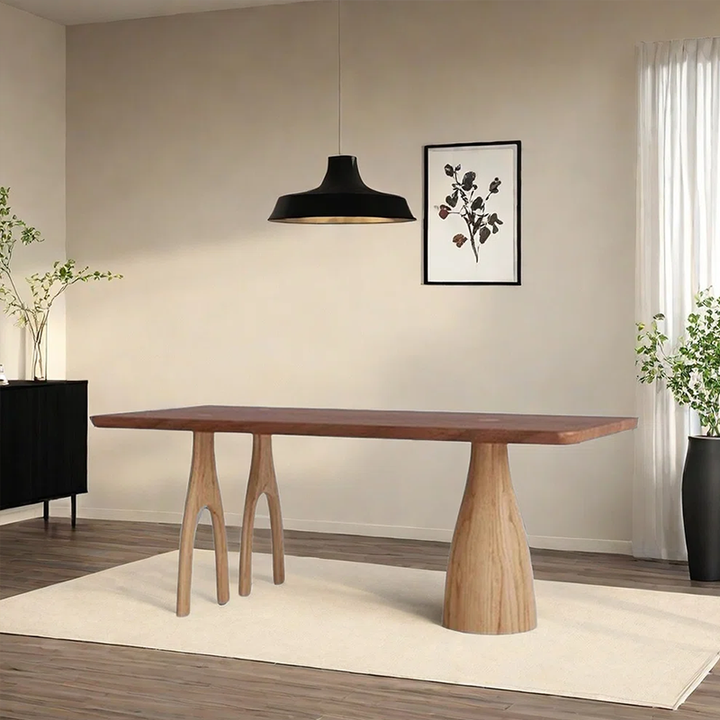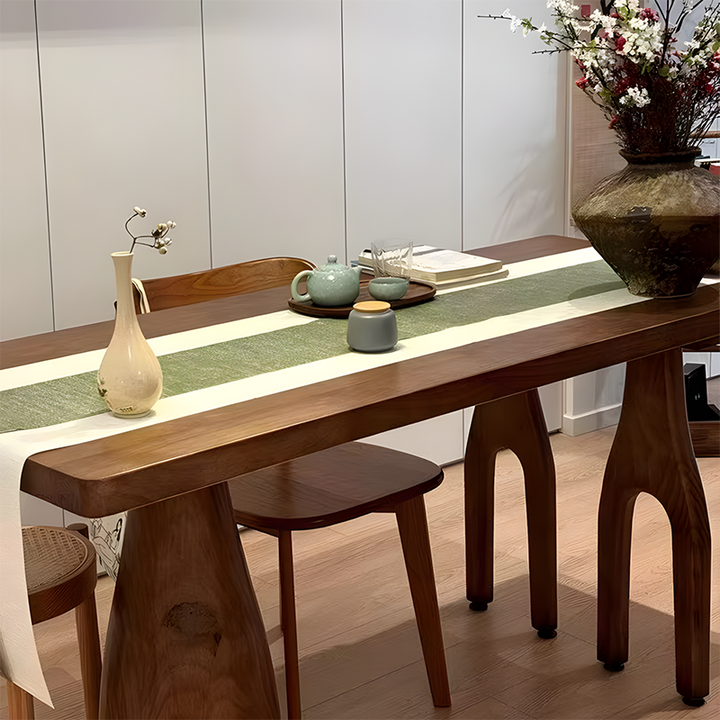 Solid Wood Dining & Work Table – 1.8″ Thick Hardwood Top with Sculptural Arch Legs, 5 Natural Finishes