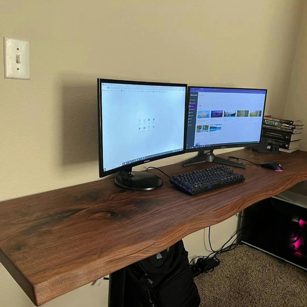 This wall-mounted floating table is crafted from high-quality solid wood, cut directly from logs, retaining naturally smooth edges for a lively feel. Each table is meticulously sanded and finished with a natural finish for a refined and durable feel. Securely attached to the wall, it features a steel bracket and can support up to 500 pounds. Designed for both practicality and aesthetics, it can be customized to any size and feature drawers for added storage, perfect for a home office or studio. Easy to install, it's stable and durable. This isn't just a table; it's the result of our meticulous craftsmanship, right in your home.