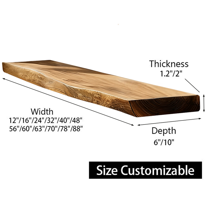 Maximize your space with a stylish and practical wall storage solution with the Thick Floating Shelf. Made from solid American wood from 13-20 year old trees, we kiln-dried it to reduce moisture and increase durability. Each piece is handcrafted from a single board and comes in a variety of wood grain finishes and size options to customize your new space. Concealed mounting hardware ensures a sleek, floating look that enhances the minimalist design. Easy to install with brackets and screws, this shelf combines functionality with style to provide a practical storage solution without sacrificing elegance.