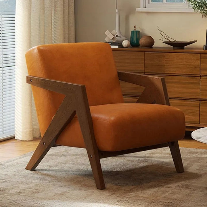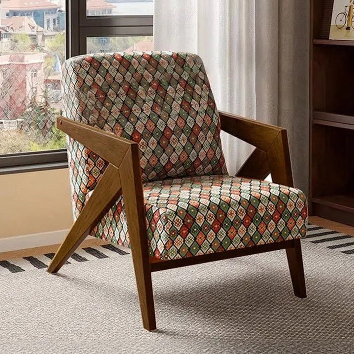 Mid-Century Modern Wooden Armchair – Upholstered Accent Chair with Solid Wood Frame for Living Room, Bedroom & Office