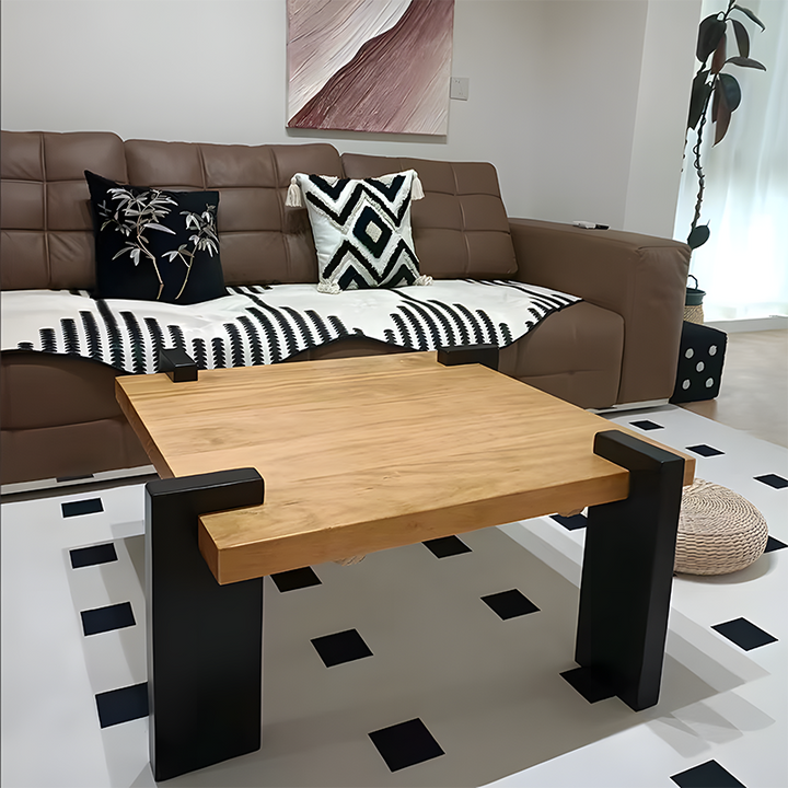 Bring timeless style and everyday function into your home with this solid wood coffee table. Featuring a clean square design, sturdy black legs, and a natural wood finish, it’s the perfect centerpiece for modern living rooms, apartments, or reading corners.