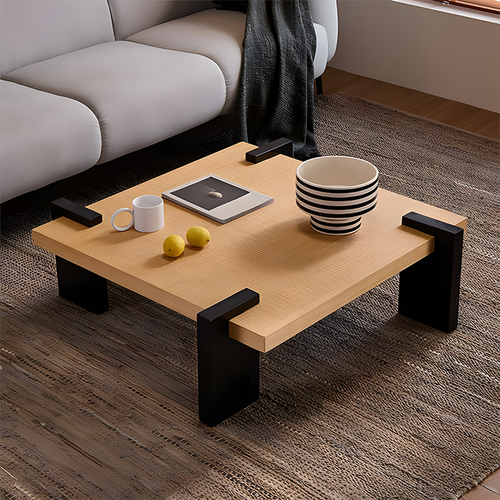 Minimalist Solid Wood Coffee Table – Square Accent Table with Easy Assembly