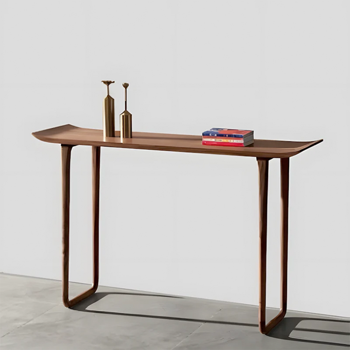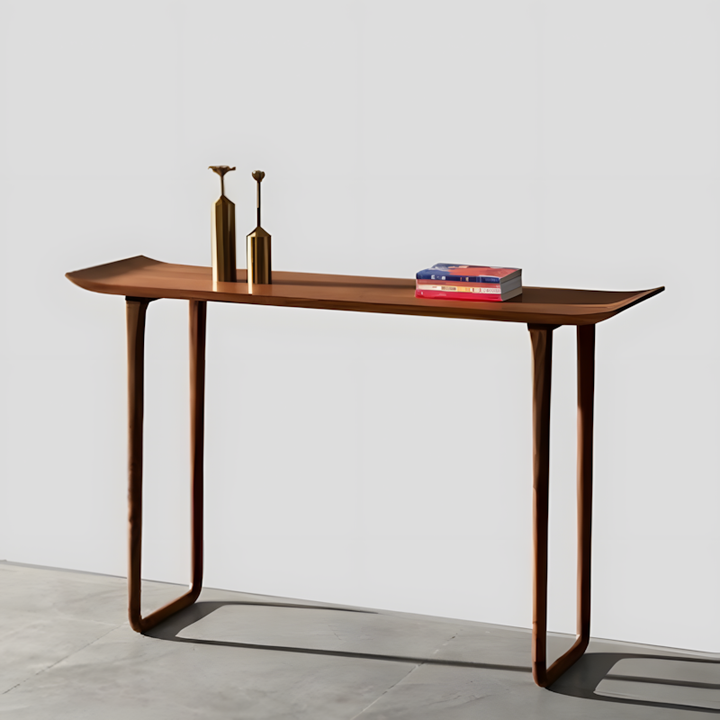 This console table blends natural beauty with minimalist design. Made from 100% solid wood, it features tray-style curved edges and sculptural rounded legs—perfect for your entryway, hallway, or behind the sofa.