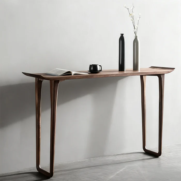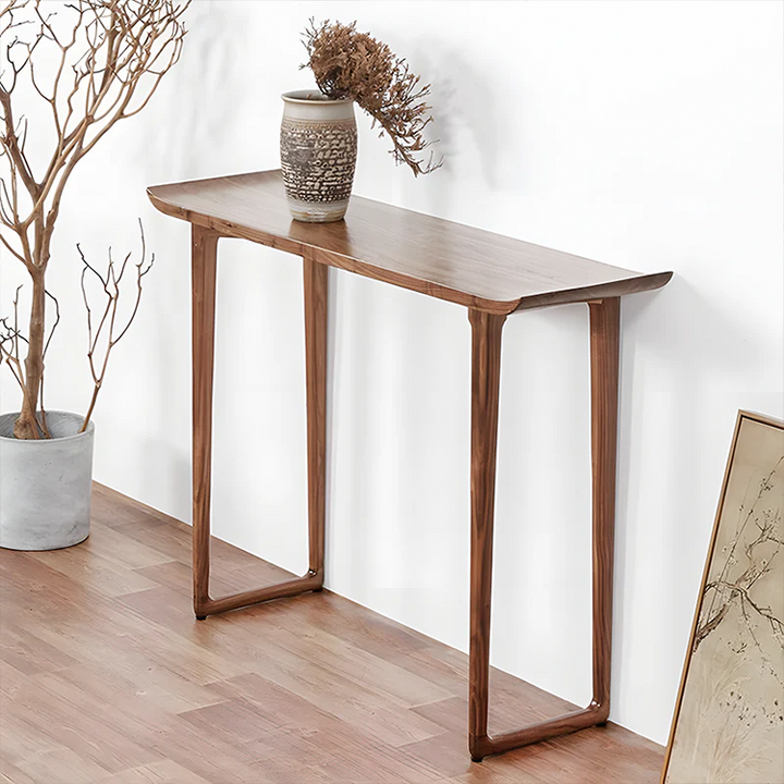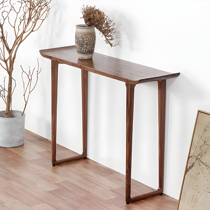 Minimalist Solid Wood Console Table – Slim Entryway & Hallway Table with Tray Edges and Rounded Legs