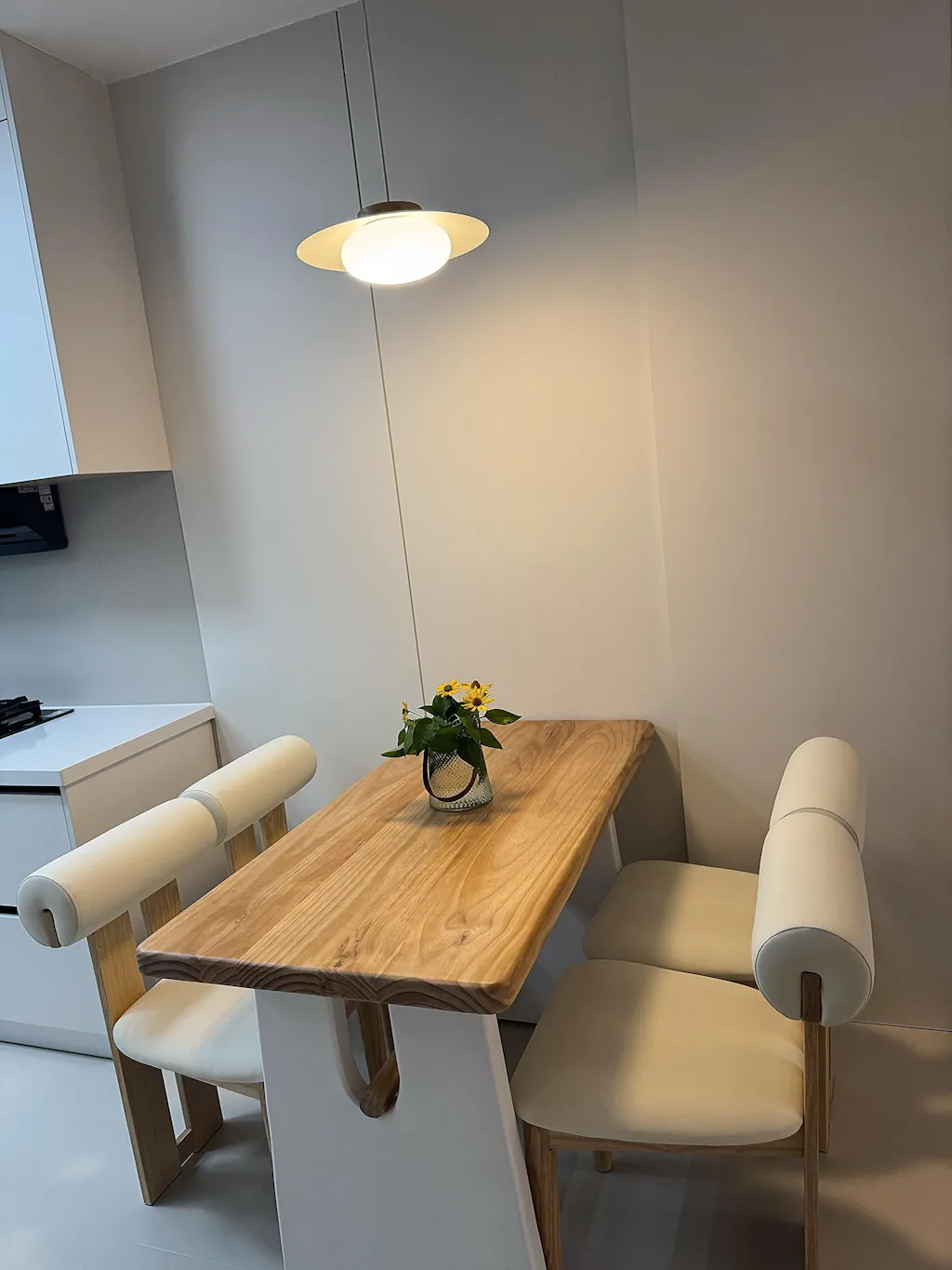 Upgrade your space with this set of 2 handcrafted solid wood chairs. Designed with a sculptural rounded backrest and plush upholstery, they bring style, comfort, and balance to dining rooms, bedrooms, or offices.