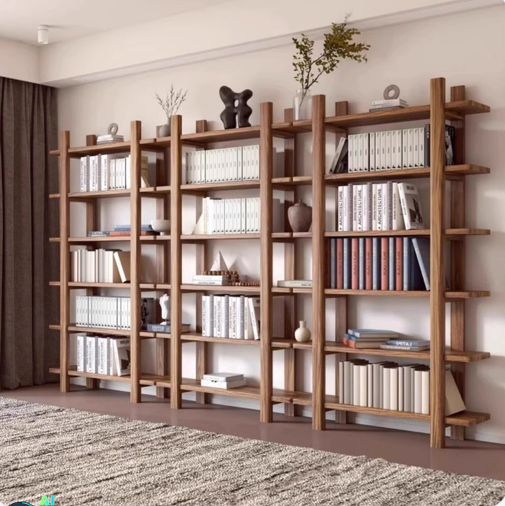 Modern Wooden Bookshelf, Open Shelving Unit, Multi-Tier Storage Rack, Handcrafted Wooden Bookshelf, Rustic Style Bookshel