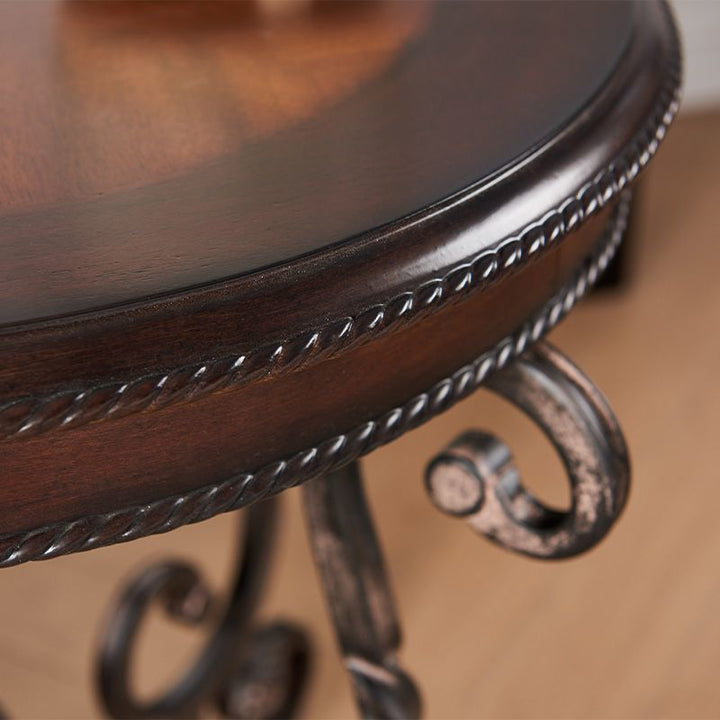 Retro Round Wood End Table with Metal Leg: Timeless round top meets a slightly distressed metal base — mid-century elegance with rustic character.