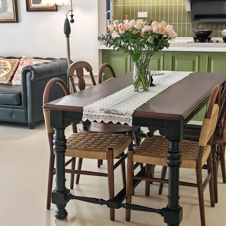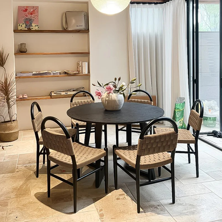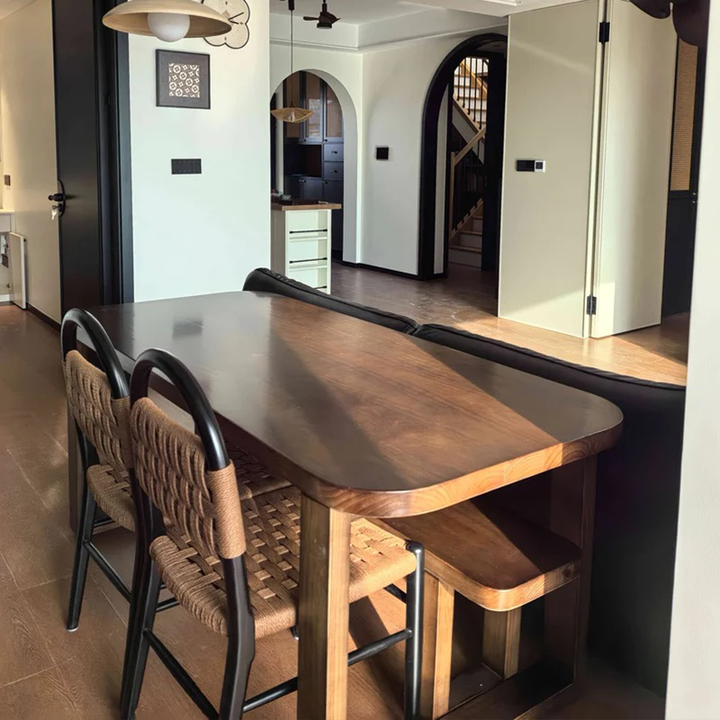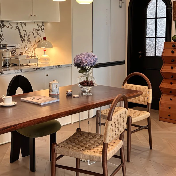 Crafted from solid rubberwood with a handwoven seat and back, this set of two dining chairs blends natural warmth with everyday durability. Mortise-and-tenon joinery provides lasting stability, while the fully assembled design makes them ready to enjoy right out of the box.