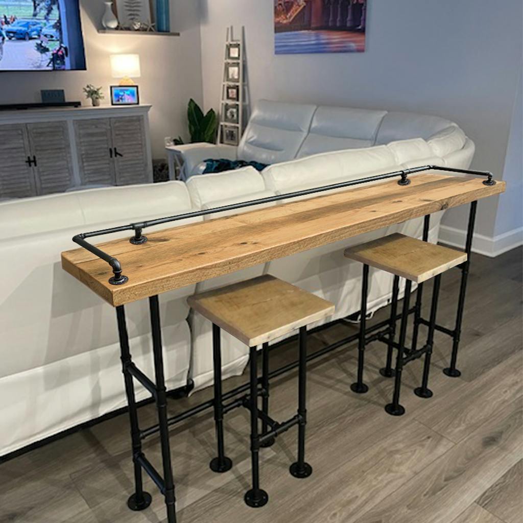 2" Thick Industrial Pipe Bar Table- Rustic Livingroom Table Solid Wood Buffet /Console