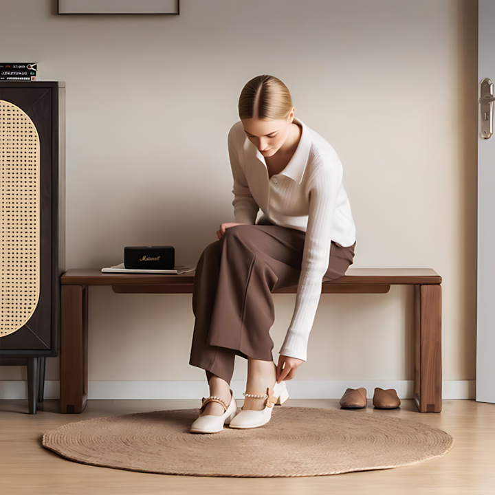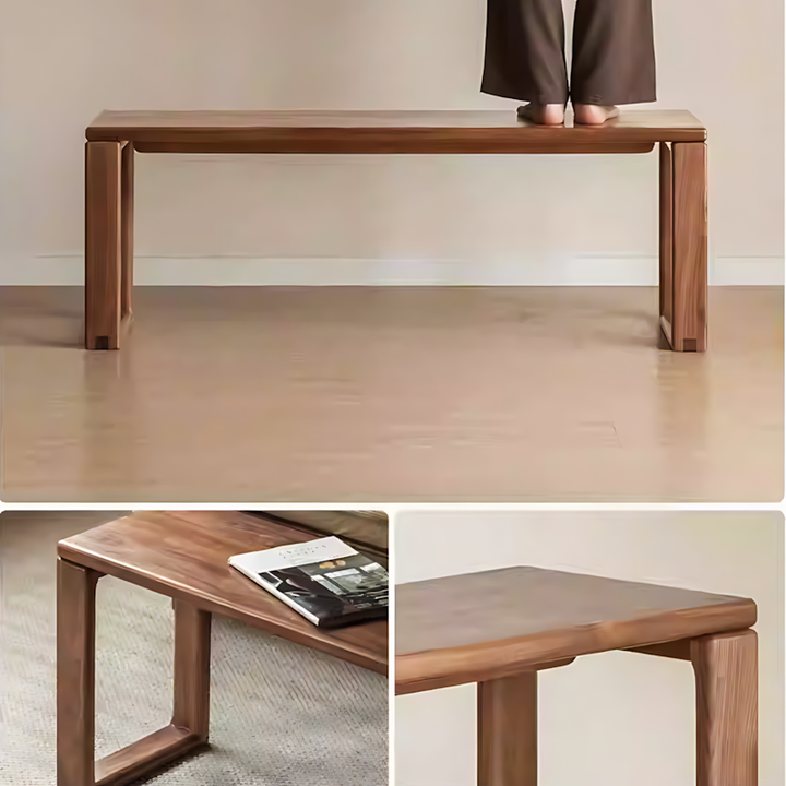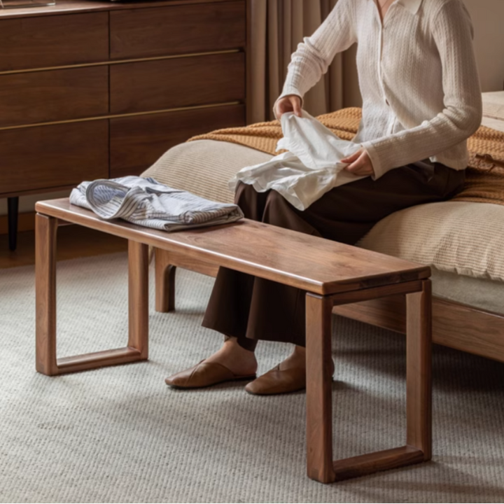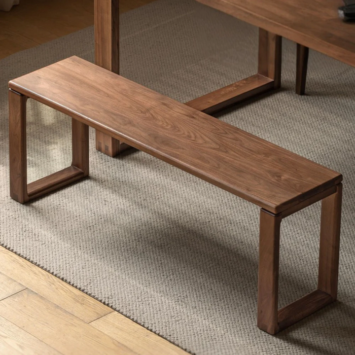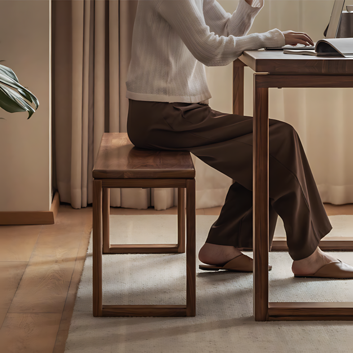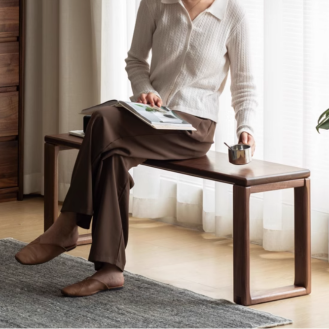 Crafted from North American black walnut, this solid wood bench features fine, natural grain and a warm, elegant hue. Its minimalist design complements diverse home styles, serving as a dining chair, footstool, or living room lounge seat. Sturdy and durable construction ensures strong weight capacity, while the backless design enhances spatial openness. Combining practicality and aesthetics, it's a versatile, high-quality piece for everyday living.