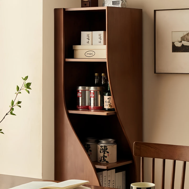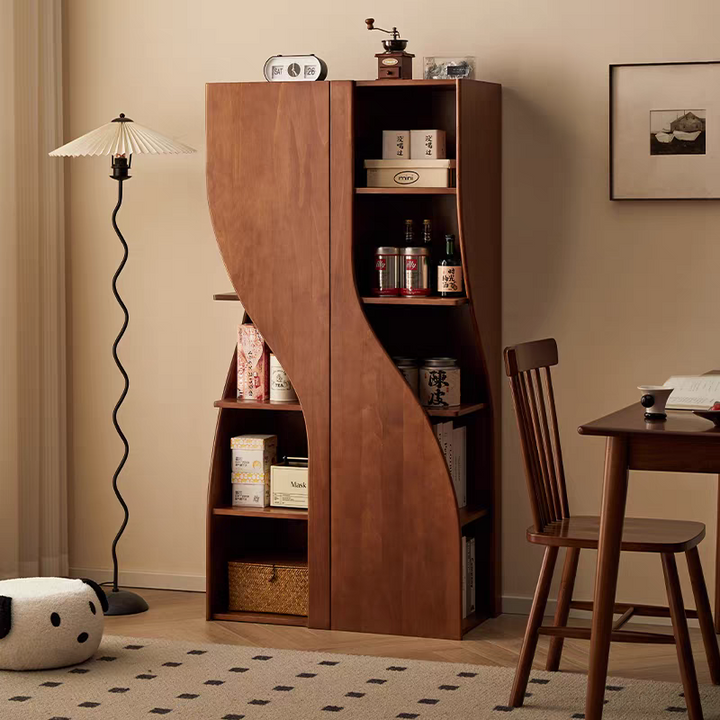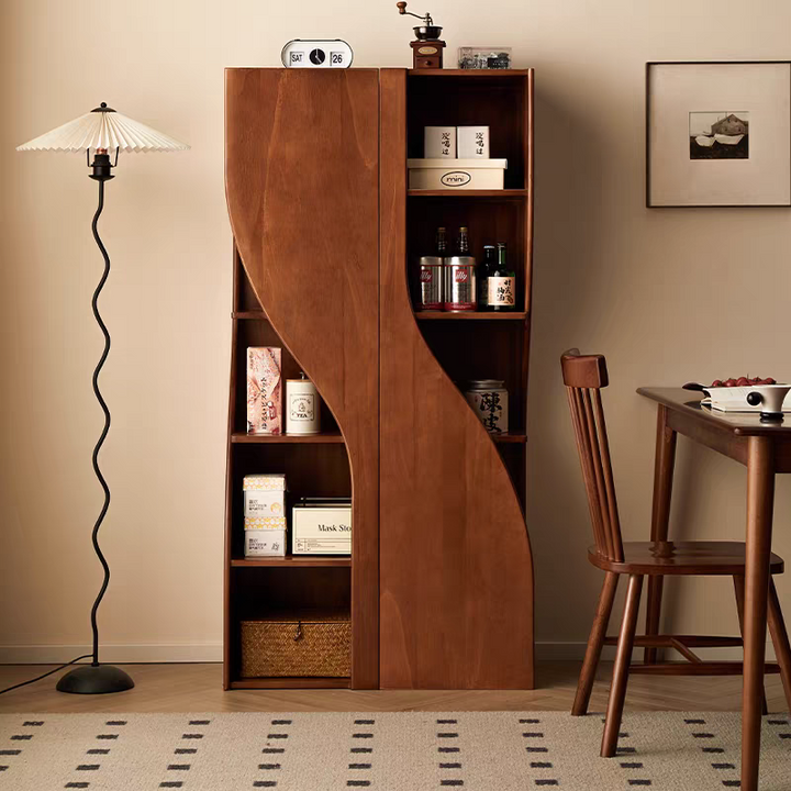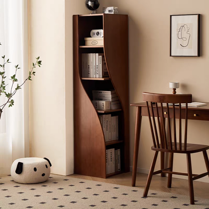 Selected high-quality solid wood, each curve meticulously polished, ensures a soft, mellow texture and durability. The streamlined S-shaped design is not only aesthetically pleasing but also draws the eye and enhances the sense of depth. The natural wood grain is clearly visible, revealing the true nature of the material and truly showcasing its authenticity. The stable load-bearing structure balances strength and aesthetics, allowing books and collectibles to be securely displayed. Infuse your home with a natural atmosphere, allowing life and art to blend seamlessly.