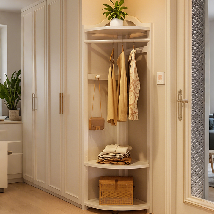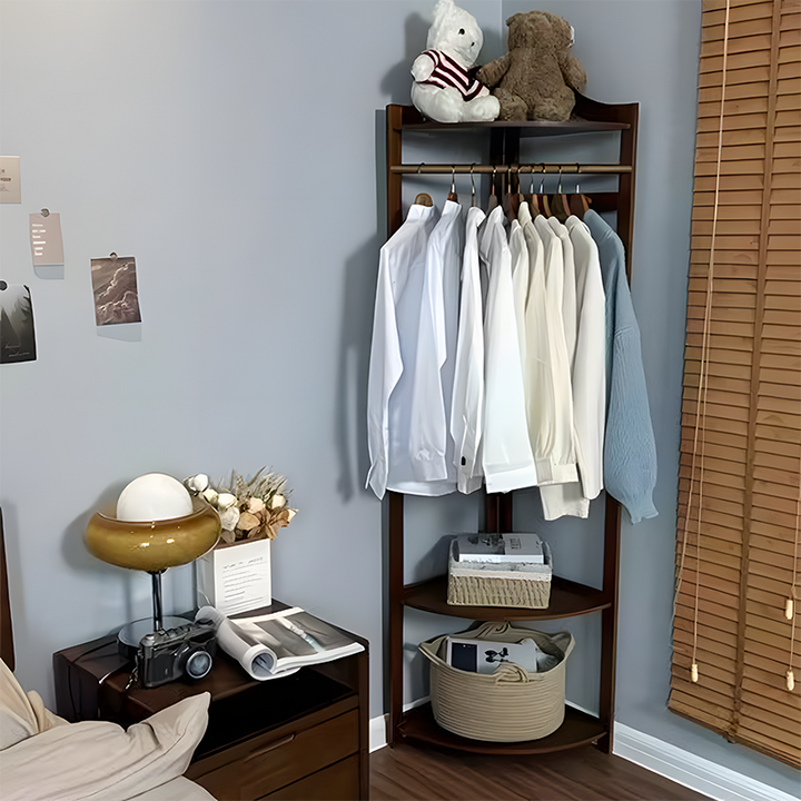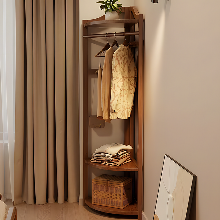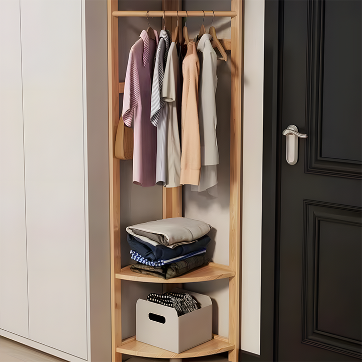 Space-Saving Design: Fits perfectly into unused corners while offering both hanging and shelving storage.