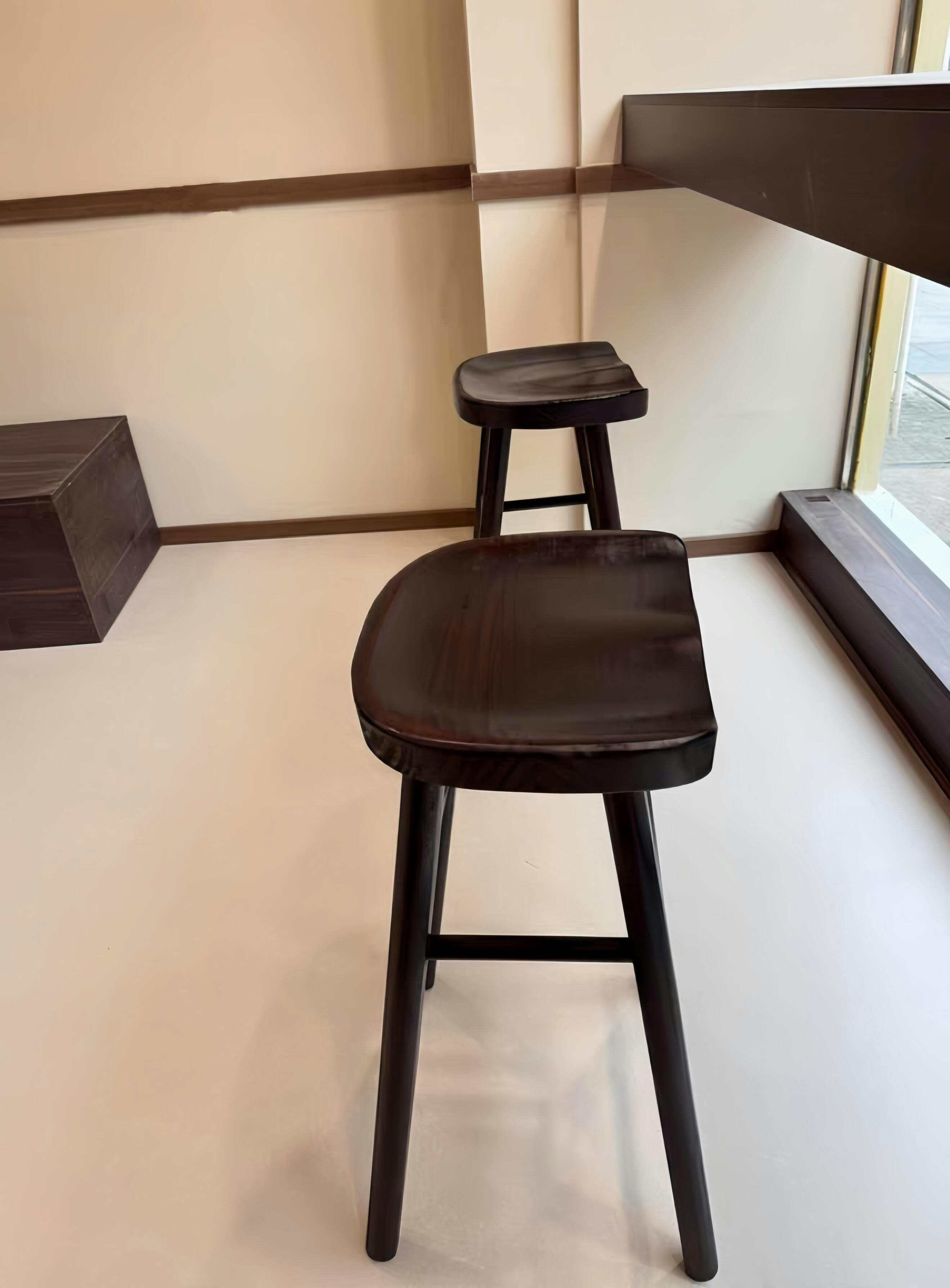 H22"/26"/30" | Set Of 2 Solid Wood Curved Seat Bar Stool