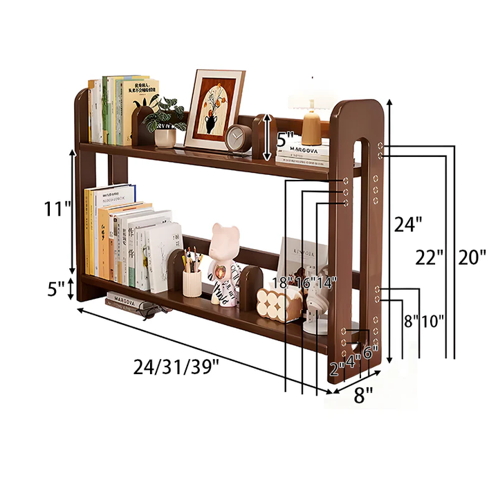 Elevate your workspace or living area with our Solid Wood Desktop Bookshelf Storage Rack. Perfectly combining functionality with elegance, this bookshelf is designed to keep your essentials organized while adding a touch of natural charm to your decor.