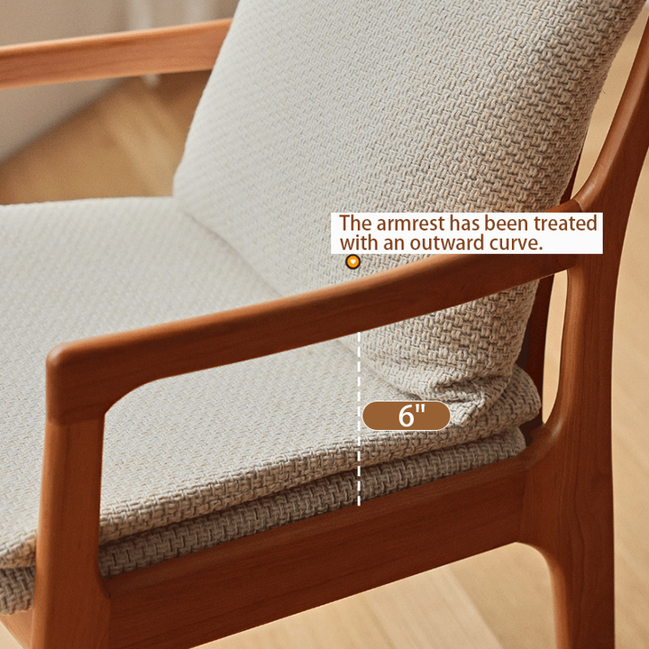 This solid wood lounge chair features a geometric structural design with clean, flowing lines, combining stability and aesthetic appeal. The blend of natural wood and soft upholstery makes it suitable for living rooms, bedrooms, or reading nooks.
