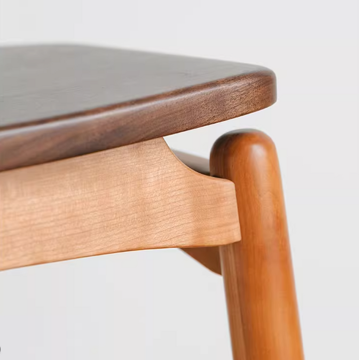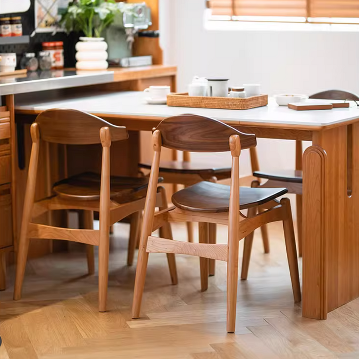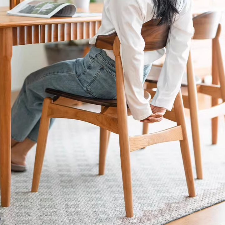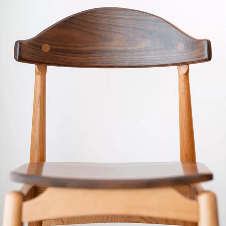This solid wood dining chair features a blend of black walnut and cherry wood, showcasing clean, flowing lines with a naturally warm texture. Its curved backrest conforms to the body's contours, offering comfortable and stable seating suitable for dining rooms, studies, or bedrooms.
