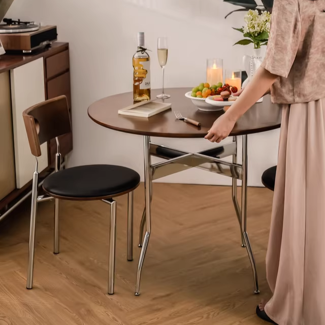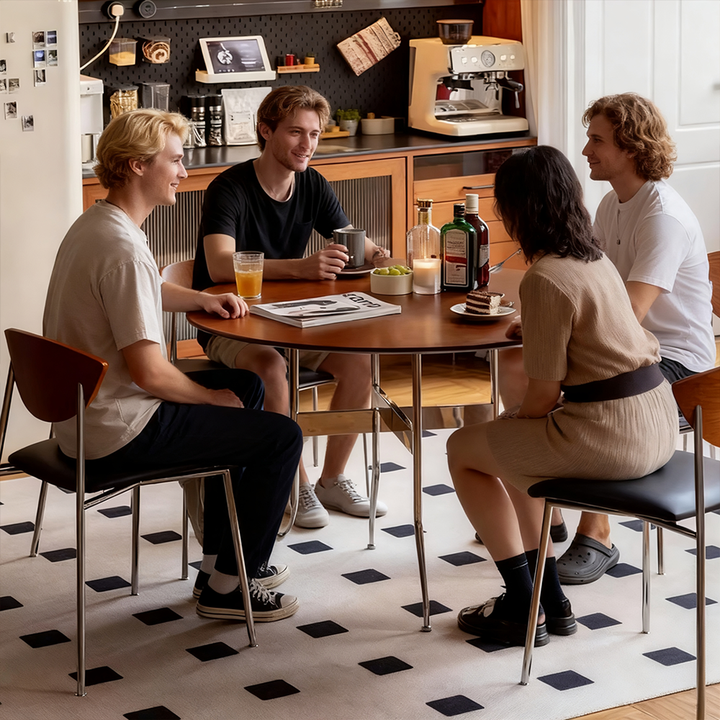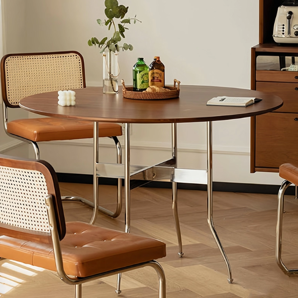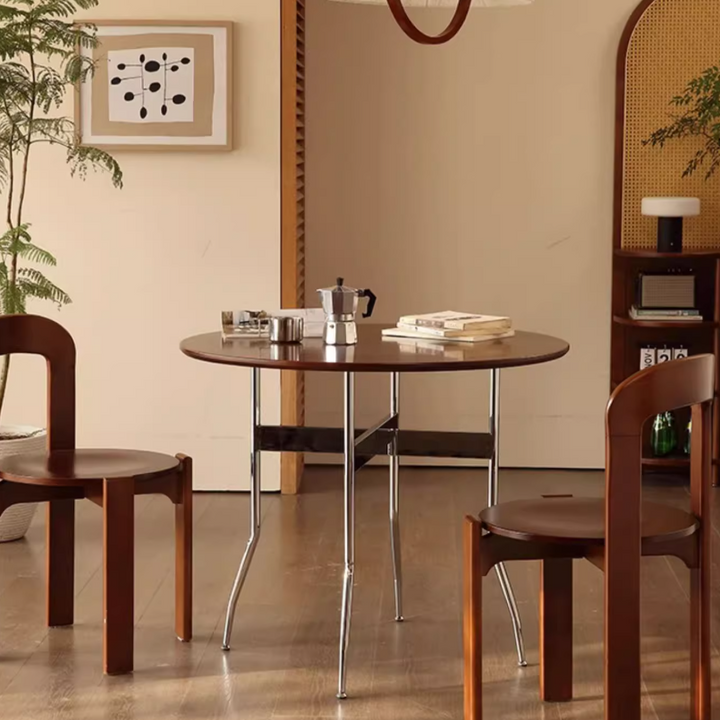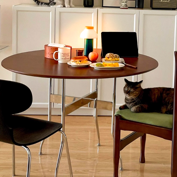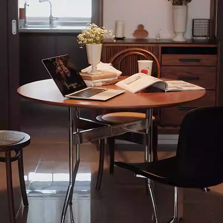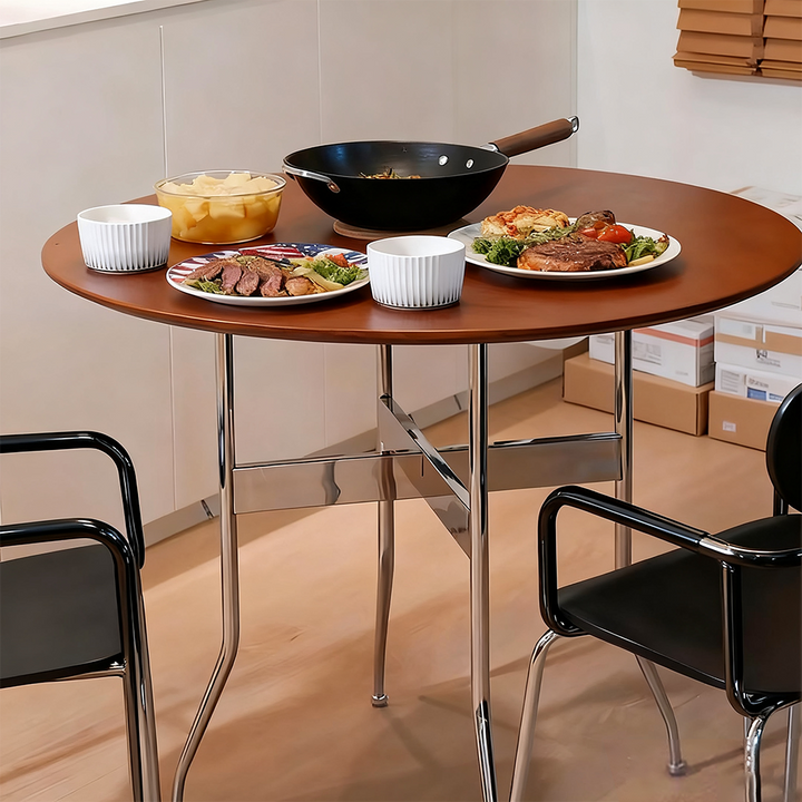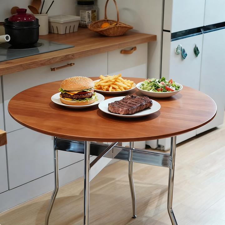 Solid Wood Dining Table, Round Wooden Table, Foldable Dining Table, Family Gathering Table, Vintage Modern Style Table