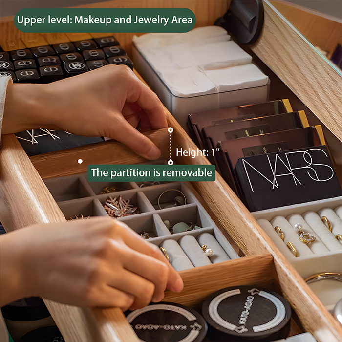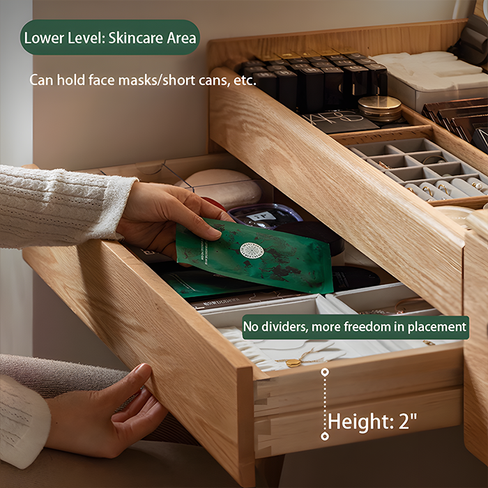 2. Multi-tiered drawer system: Organized storage for tidy categorization.