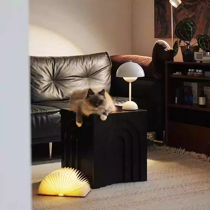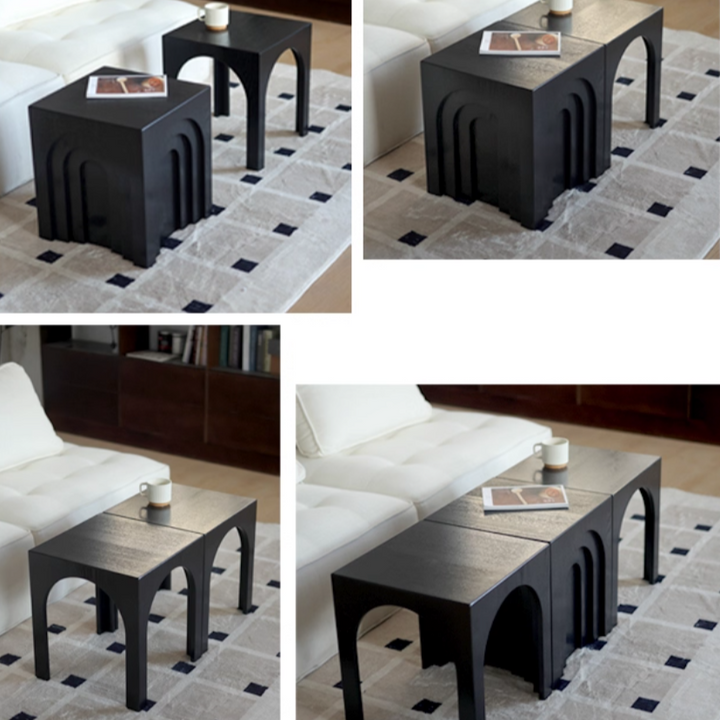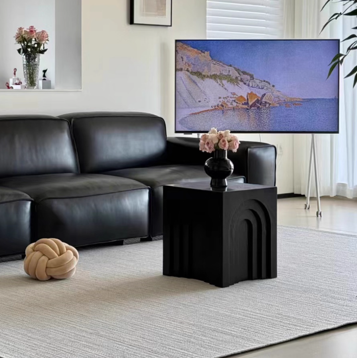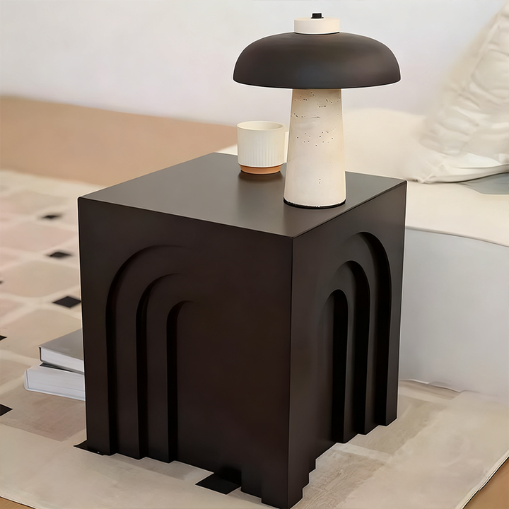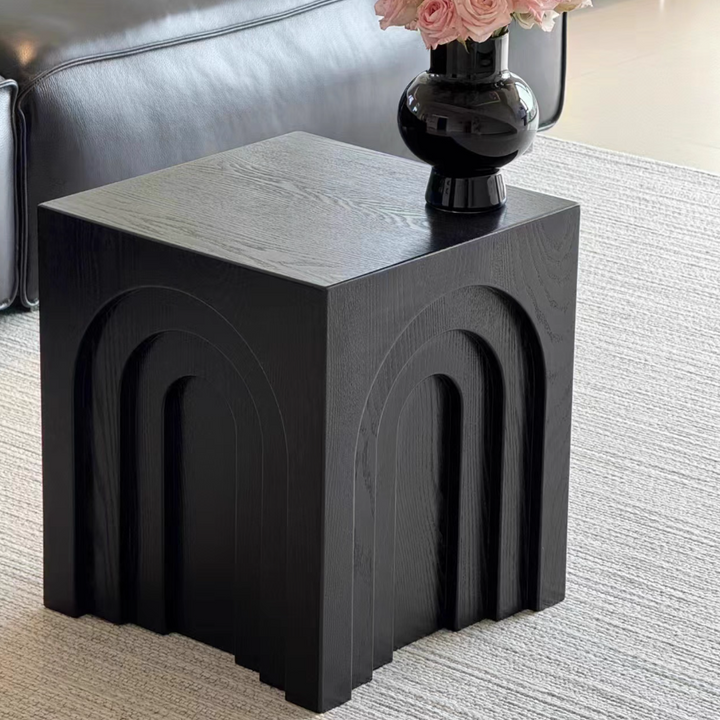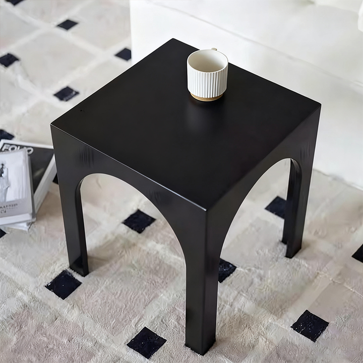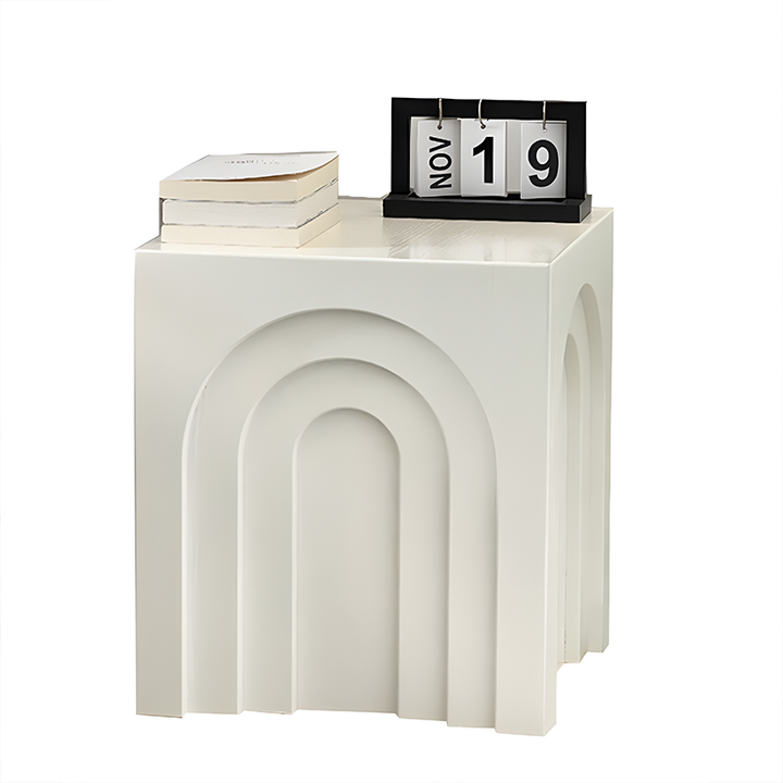 This arched side table draws inspiration from minimalist geometric design, featuring richly layered three-dimensional lines for a distinctive yet stable form. It can serve as a bedside table, coffee table, or decorative table.