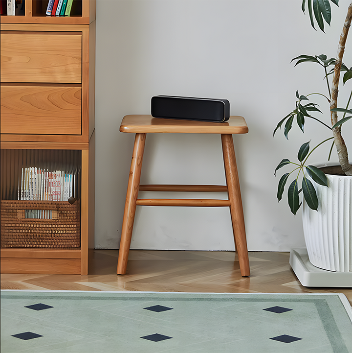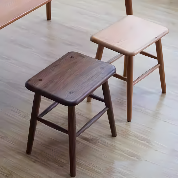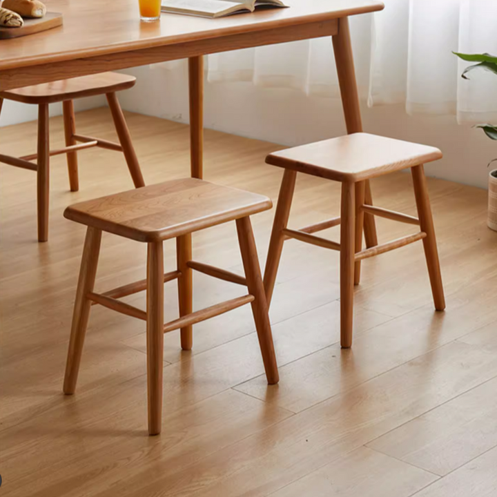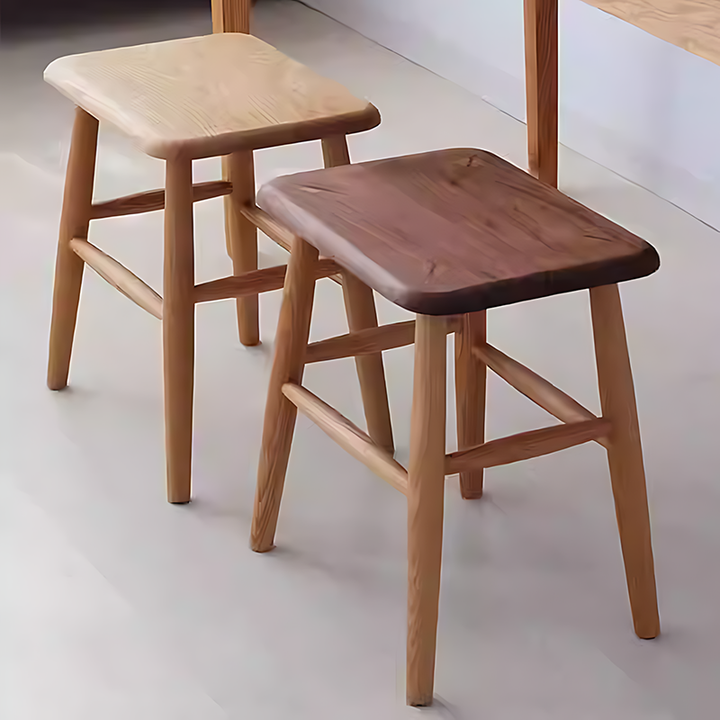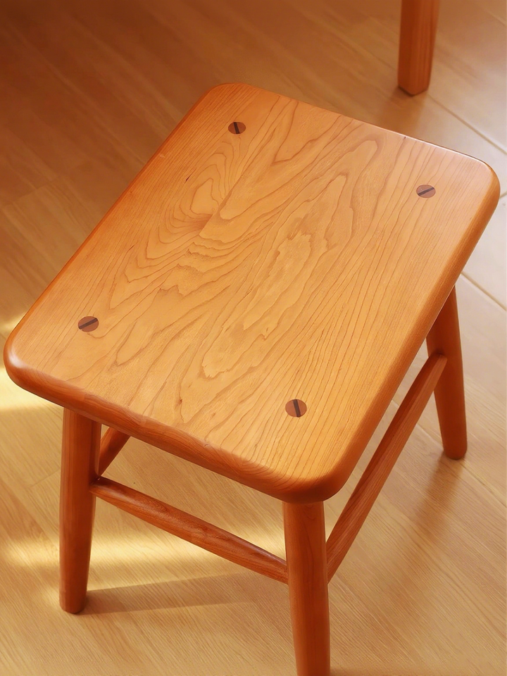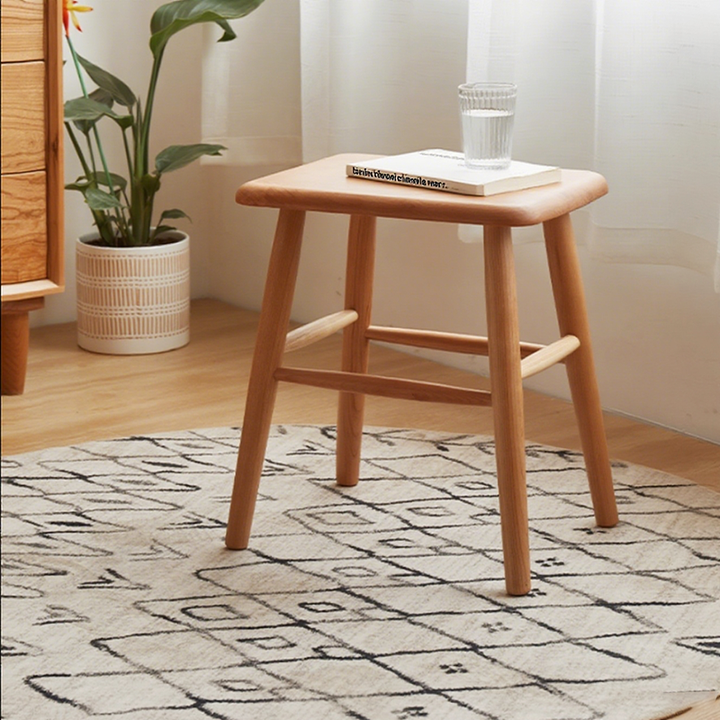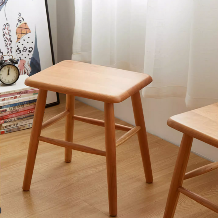 This solid wood square stool features mortise-and-tenon craftsmanship for a sturdy and durable structure. Its natural wood grain is clear and distinct, offering a warm and smooth texture. Its compact design makes it ideal as a shoe bench, dining stool, or bedroom footstool—versatile and space-saving. The minimalist silhouette complements any home decor, blending practicality with aesthetic appeal.