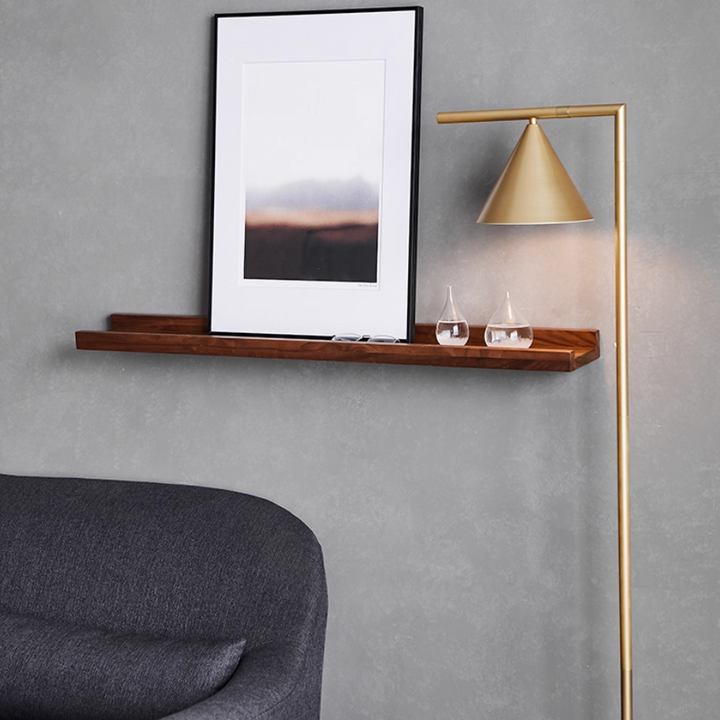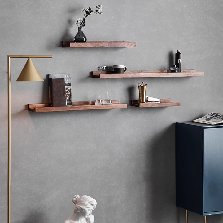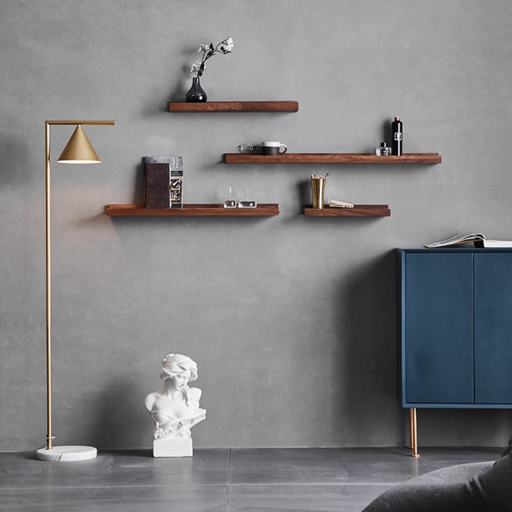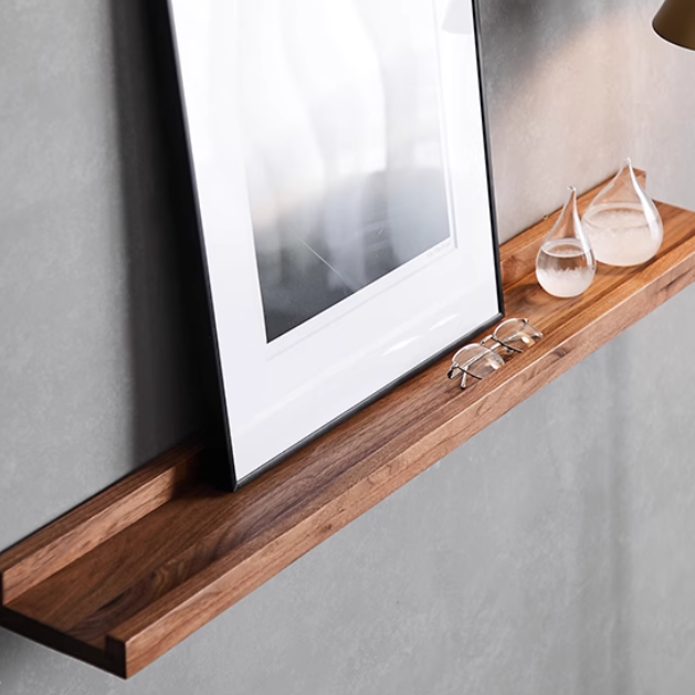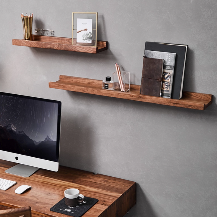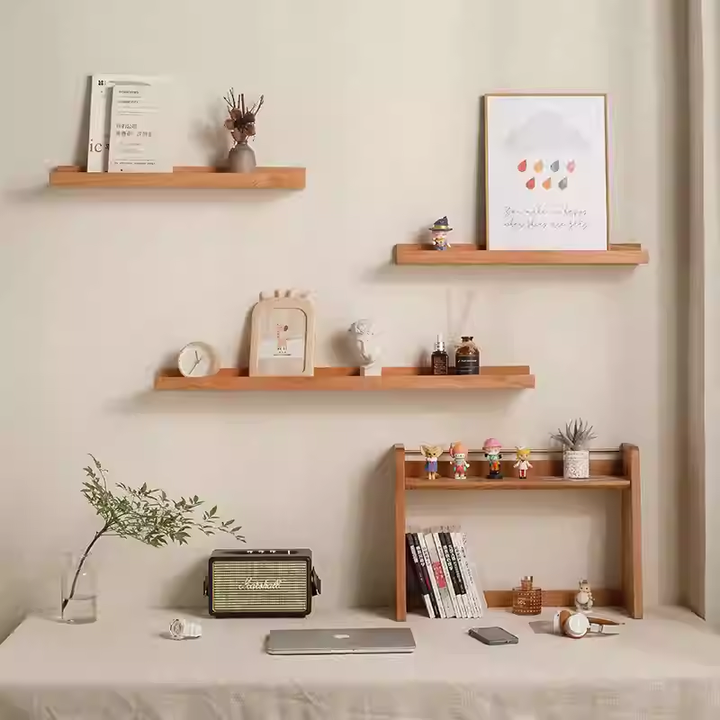 Minimalist solid wood wall shelf with natural grain patterns saves space. Functions as a bookshelf, storage rack, or decorative shelf, suitable for living rooms, bedrooms, studies, and more to create a tidy and aesthetically pleasing home environment.