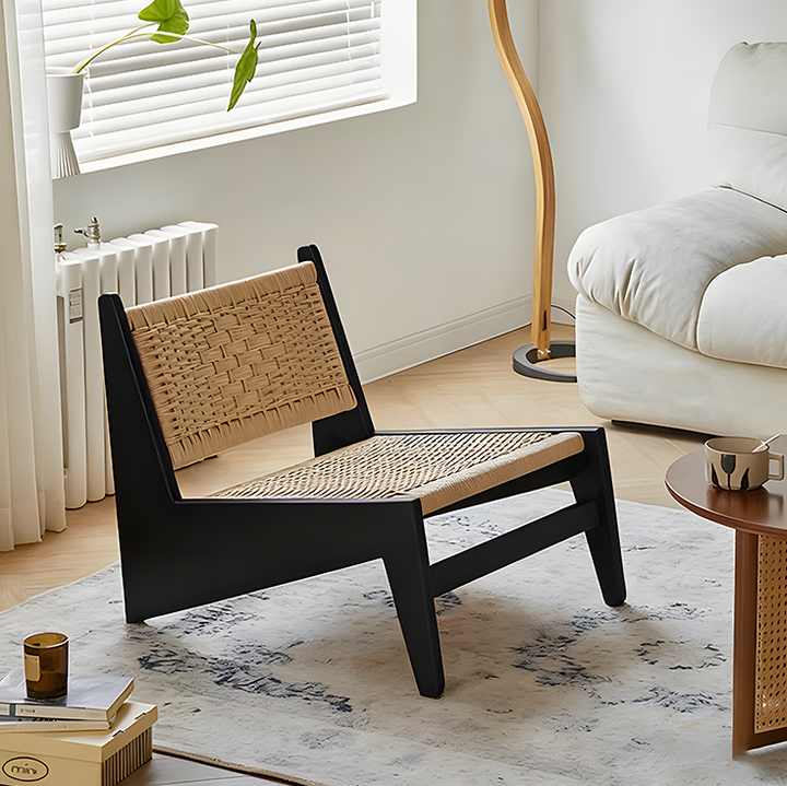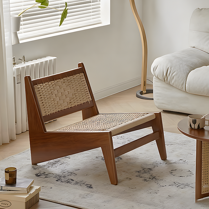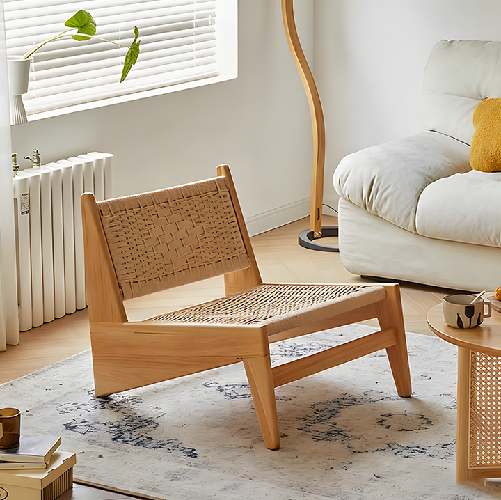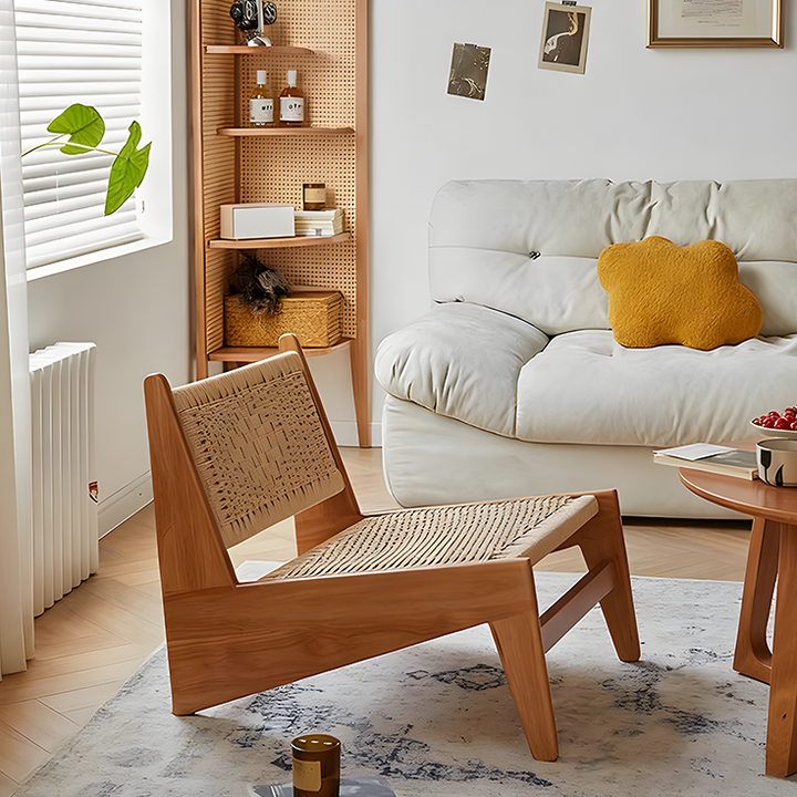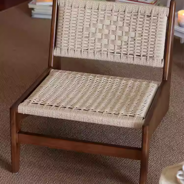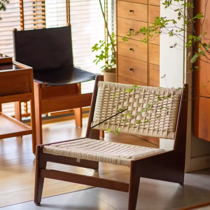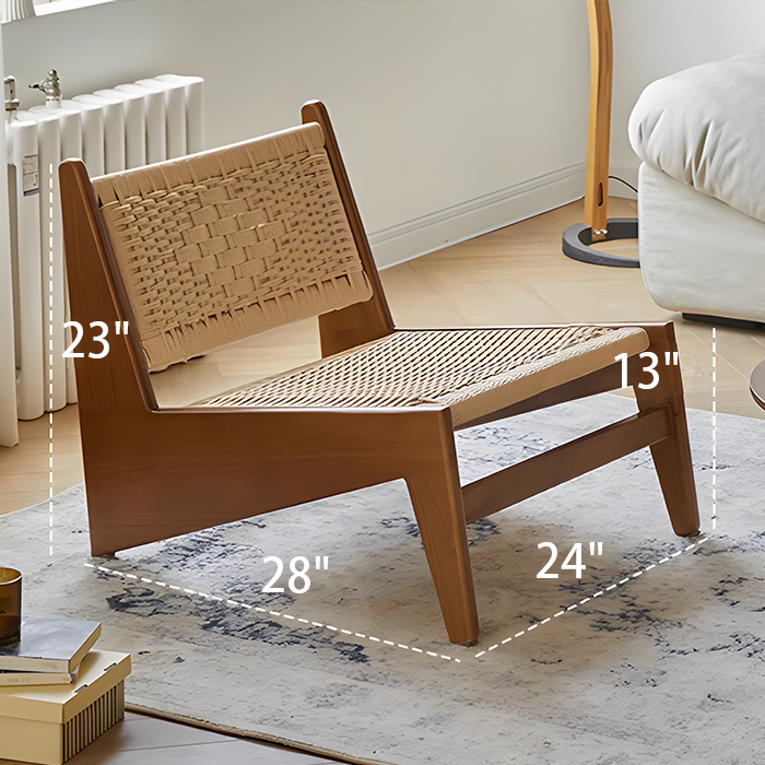 This solid wood rattan/cord woven recliner features a sleek, minimalist design with a sturdy frame and a breathable, comfortable woven backrest. Whether placed in the living room, bedroom, or balcony, it delivers a relaxing leisure experience, making it an aesthetically pleasing and practical choice for your home.