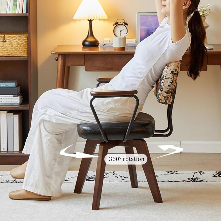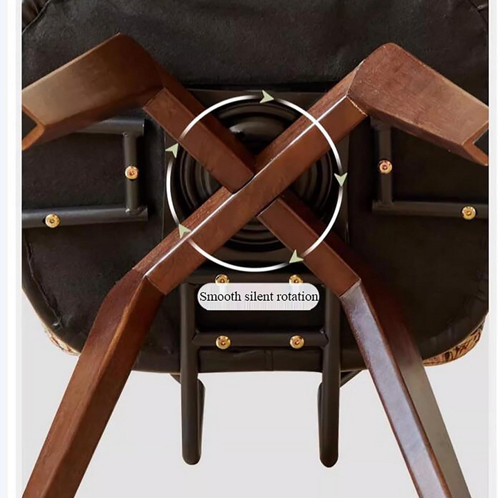 Material: Grade 3A solid rubberwood legs, breathable cotton-linen upholstered backrest, oiled leather upholstered seat cushion, metal swivel base, carbon steel frame