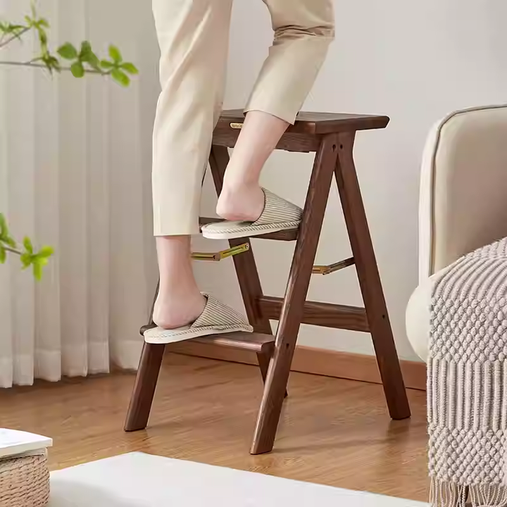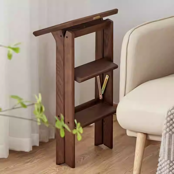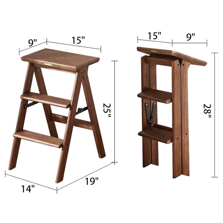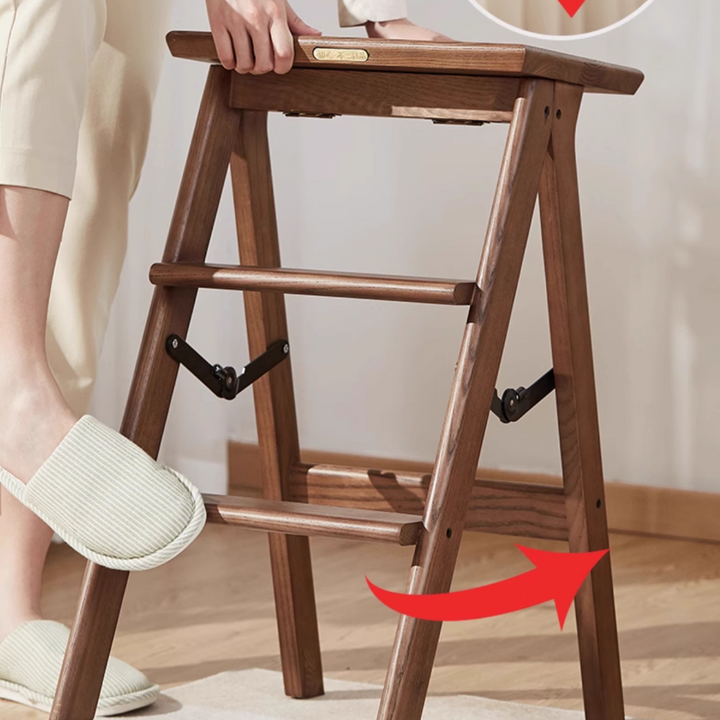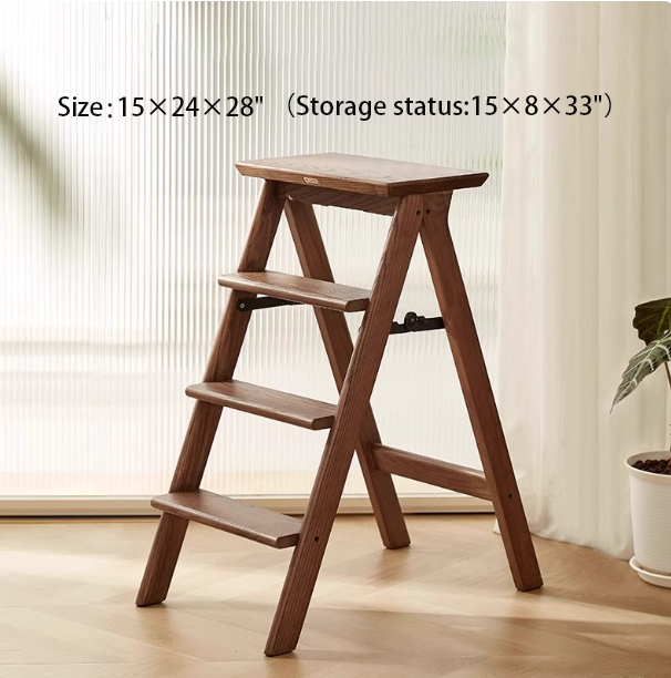 This solid wood step stool combines shoe bench and step ladder functionality, crafted from thickened solid wood for stability and durability. Its three-step design facilitates daily tasks like reaching items, stepping up, or changing shoes. Folds for space-saving storage, offering versatile utility for living rooms, bedrooms, studies, and more.