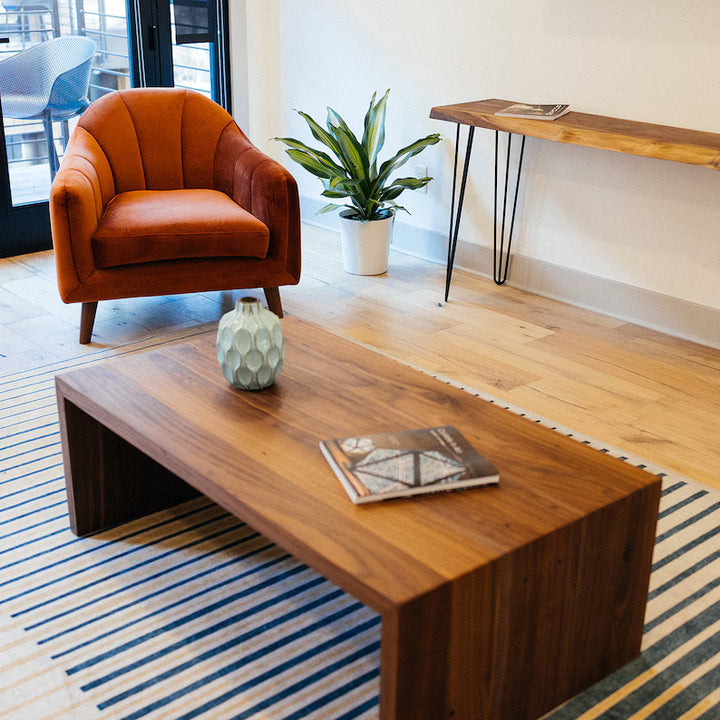 Modern Waterfall Coffee Table, Minimalist Coffee Table, Black Walnut