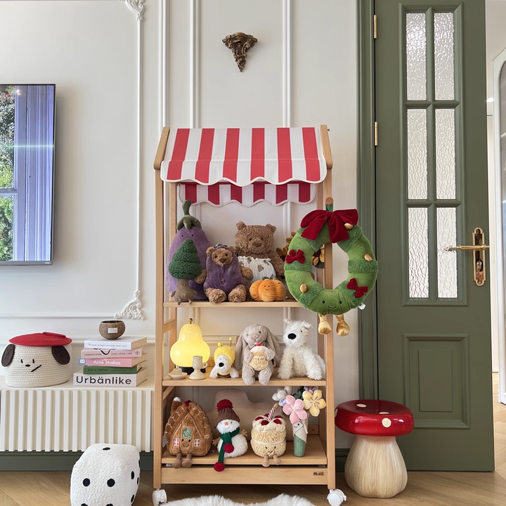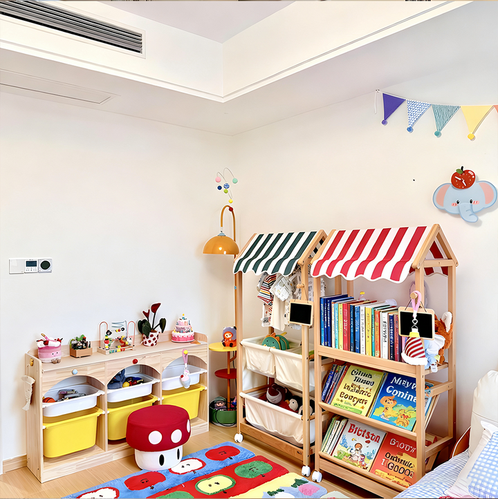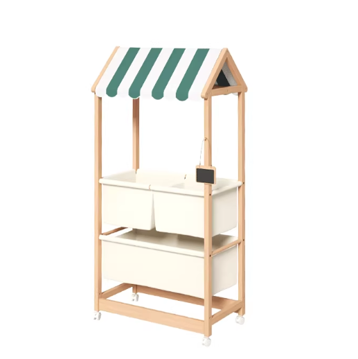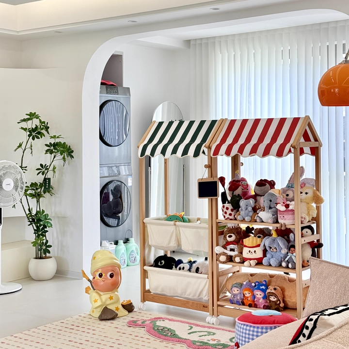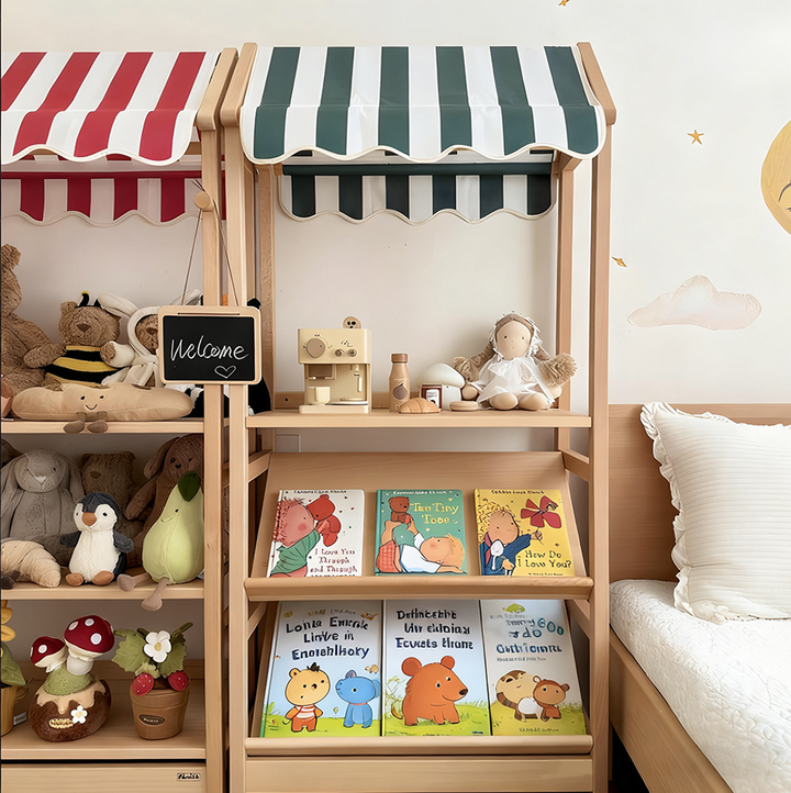 3. Multi-tier storage — Holds picture books, toys, and small items.