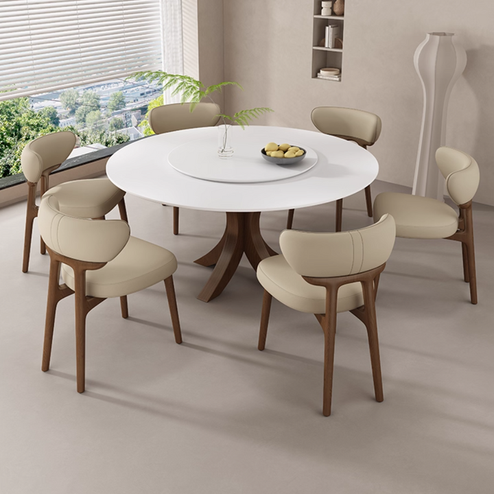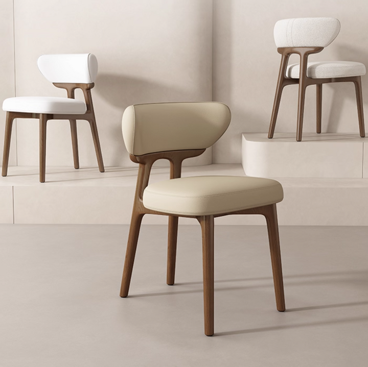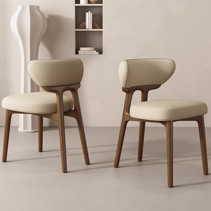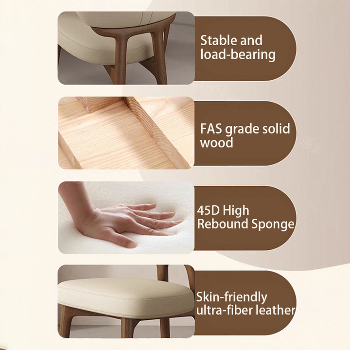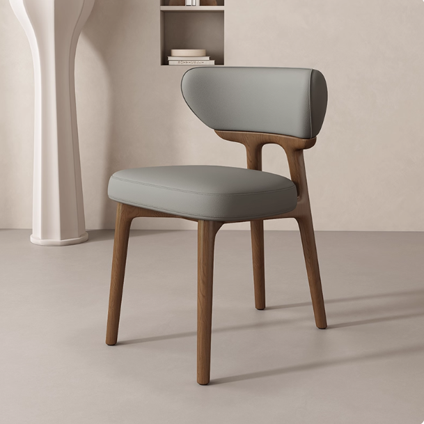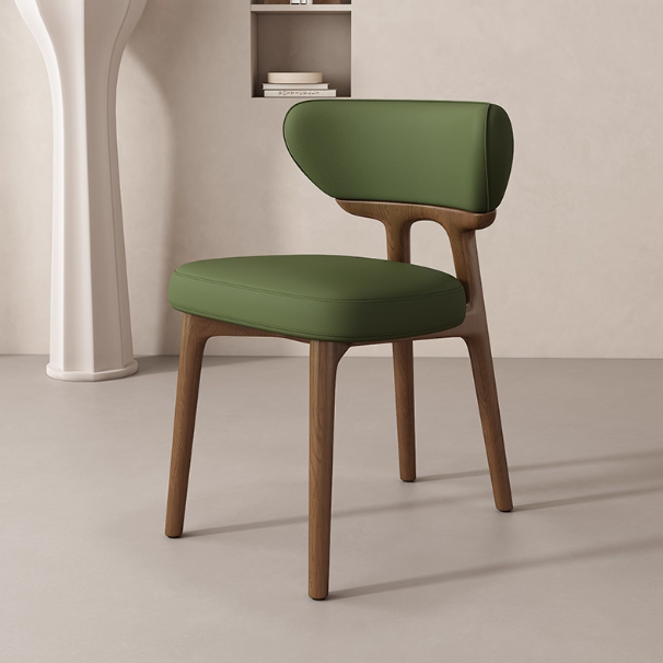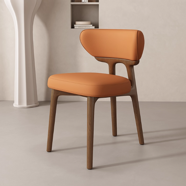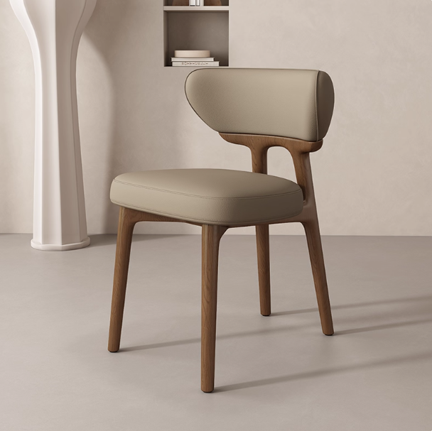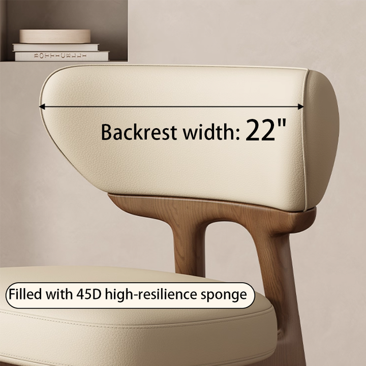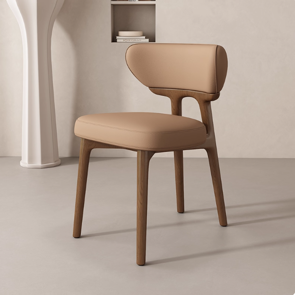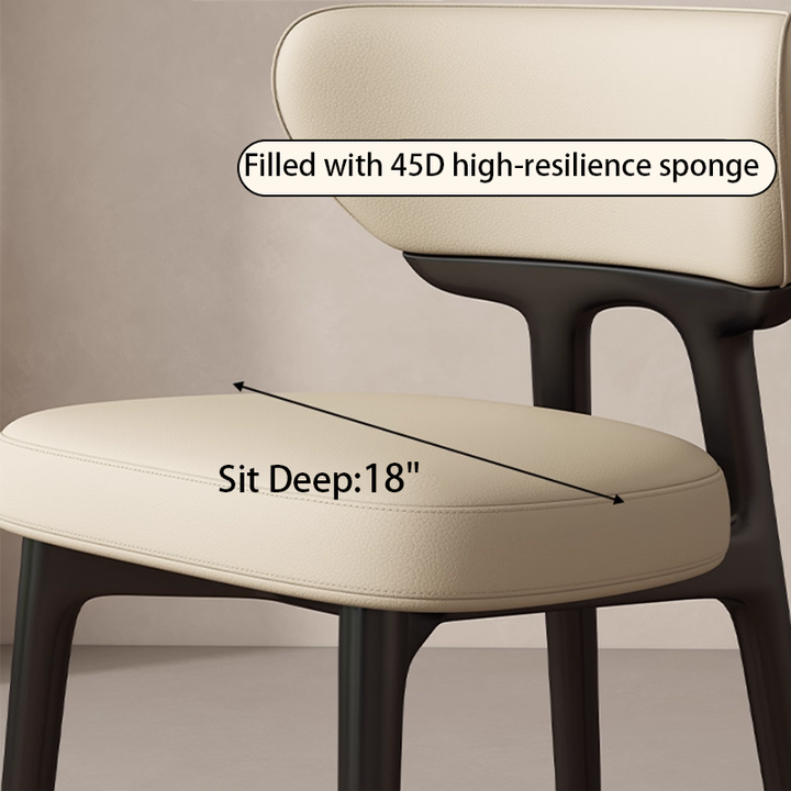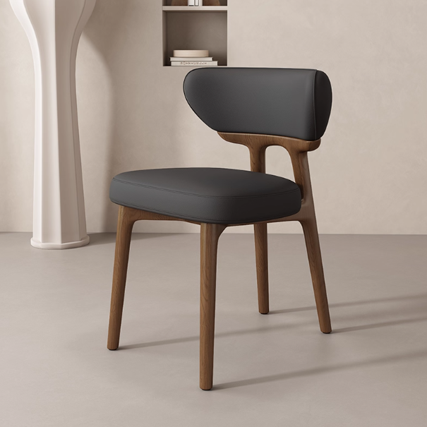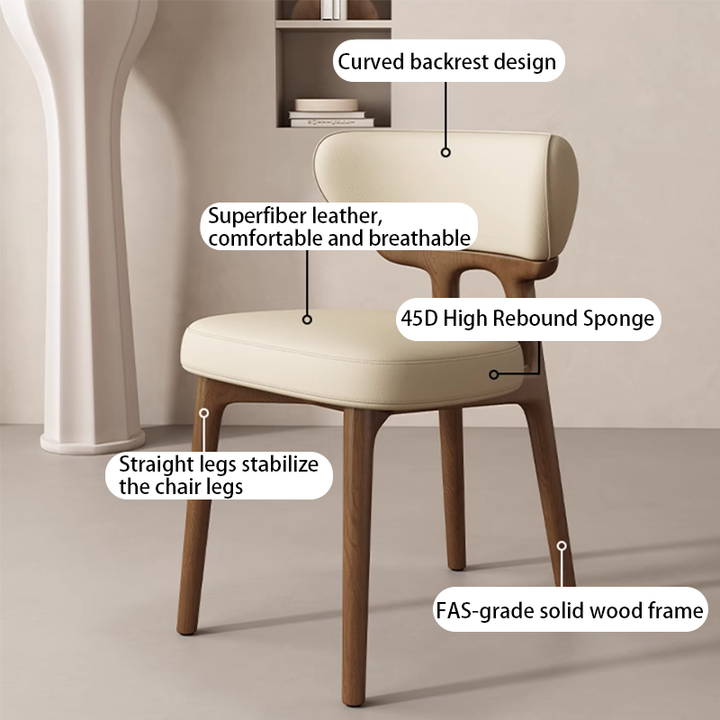This modern dining chair features a solid wood frame for stability and durability. The curved backrest contours to your spine, providing comfortable support. High-resilience foam paired with breathable leather upholstery ensures soft, non-stuffy seating. Its clean, elegant form suits dining rooms, kitchens, coffee corners, and desk spaces.
