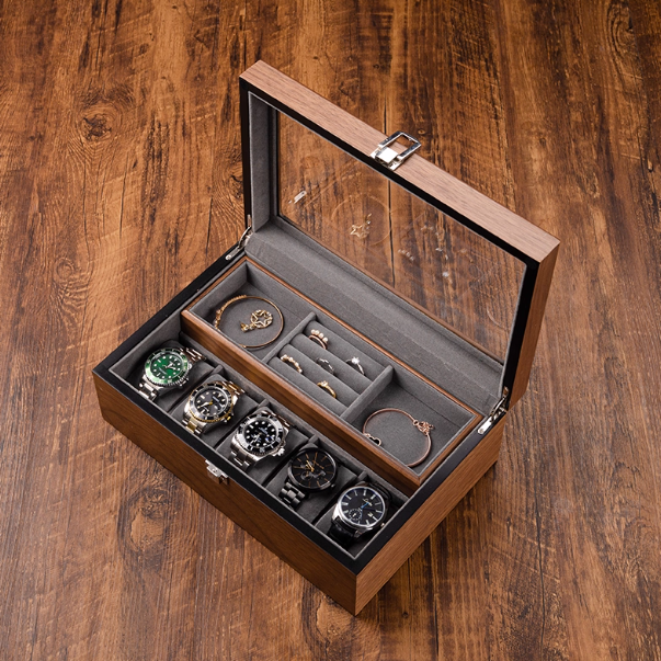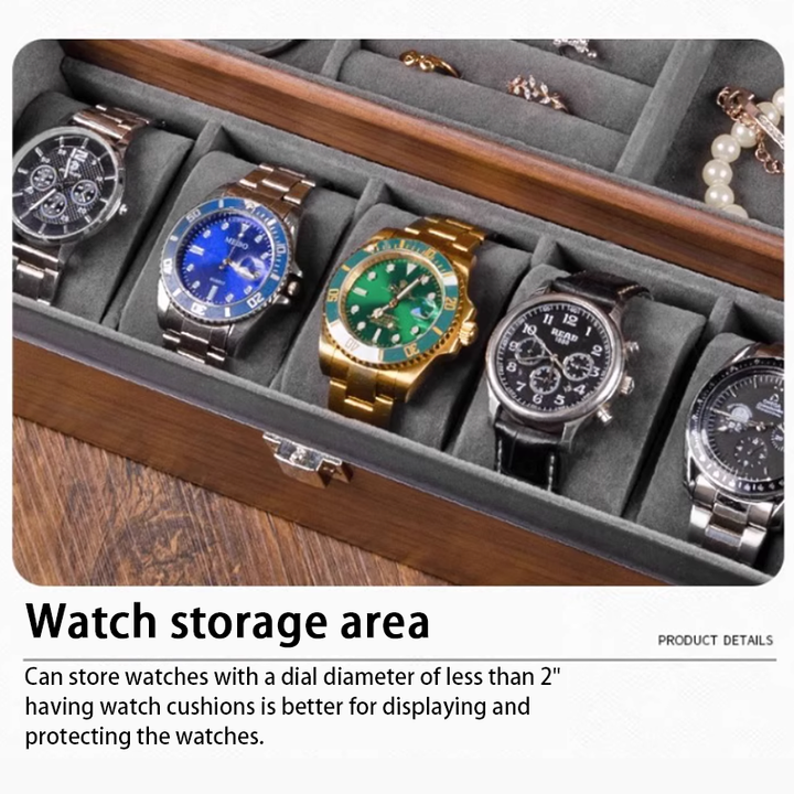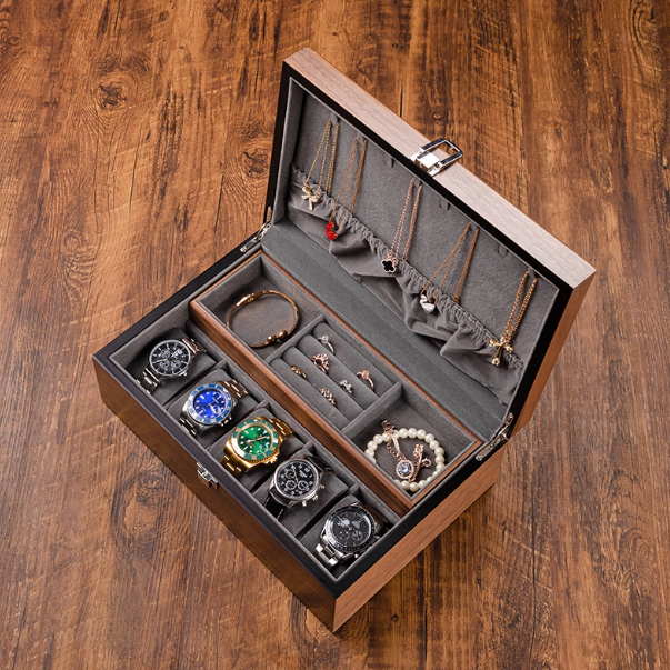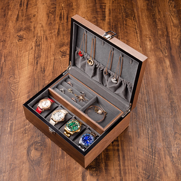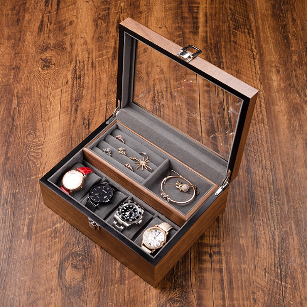 Black Walnut Jewelry Storage Box, Watch & Jewelry Organizer, Multi-Function Display Case
