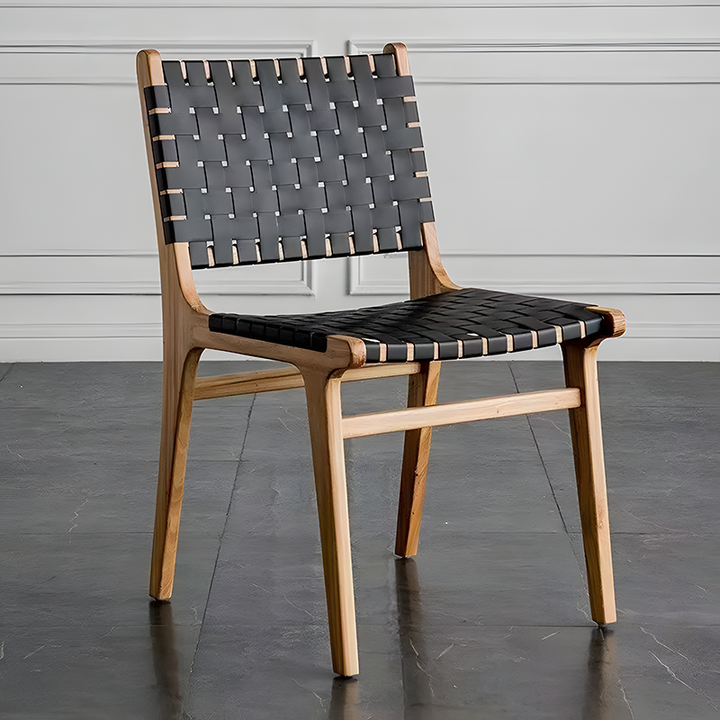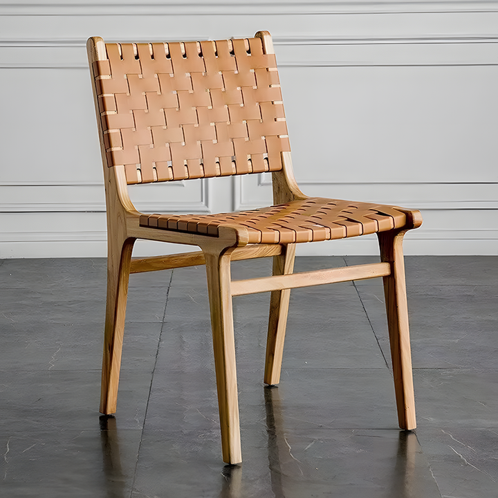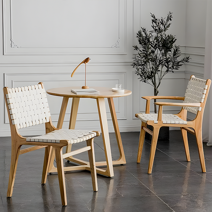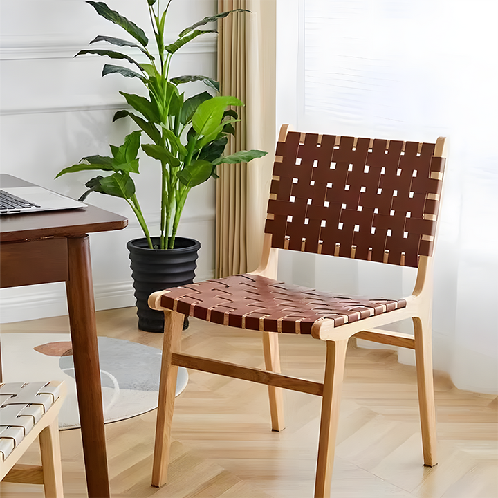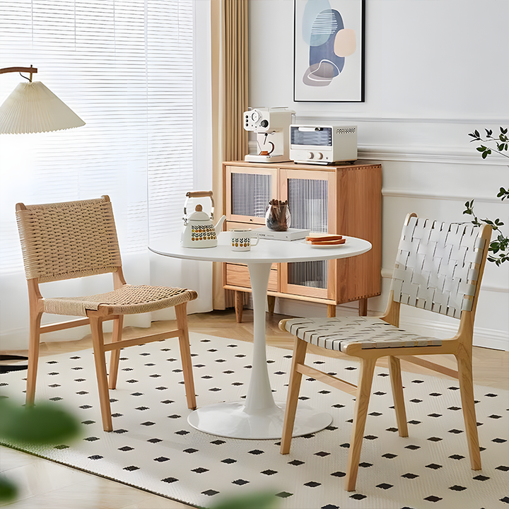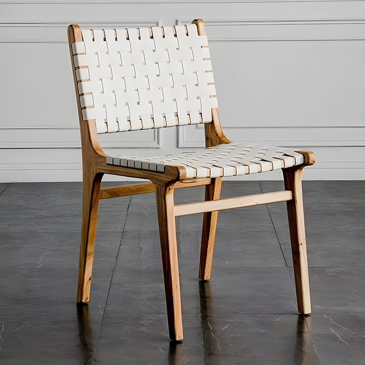 Woven Designer Dining Chair — Handcrafted Solid Wood Frame with Natural Rope Weave, Fully Assembled